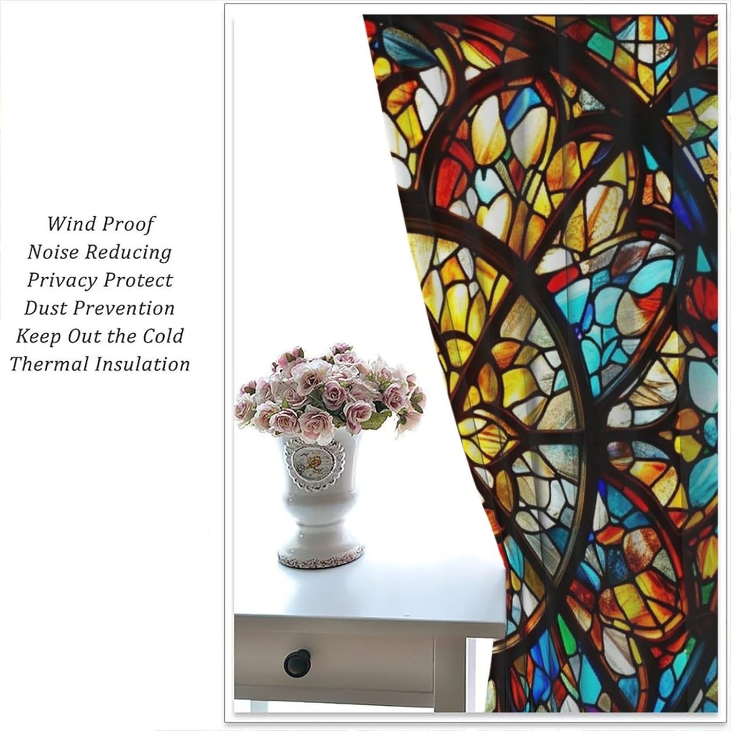 Stained Glass Curtains,Retro Mid Century Abstract Colorful Geometric Prints Home Decor Drapes for Bedroom Living Room Kitchen Window Treatment 2 Panels Set Total Size 52" W X 84" L Inch