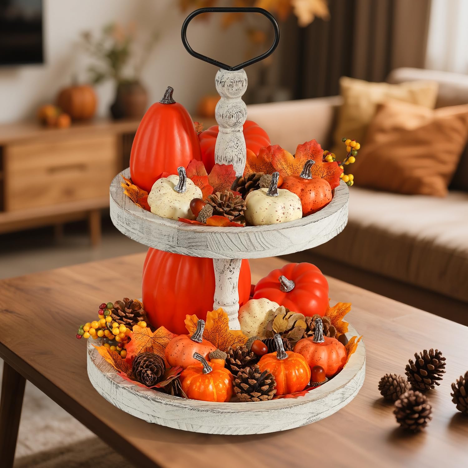 Artmag 51 PCS Artificial Pumpkins, Fall Harvest Decorations with Acorns, Pinecones, Berries, Maple Leaves for Farmhouse Fall Thansgiving Halloween Decor Decoration