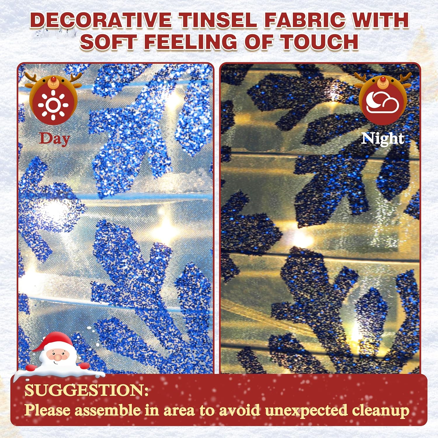 - Premium Quality: Our lighted Christmas decoration is made of a high quality powder-coated steel frame which ensures the long service life. It is durable enough for you to use year over year and it wouldn’t break easily. Decorative tinsel fabric gives you soft feeling while touching it
