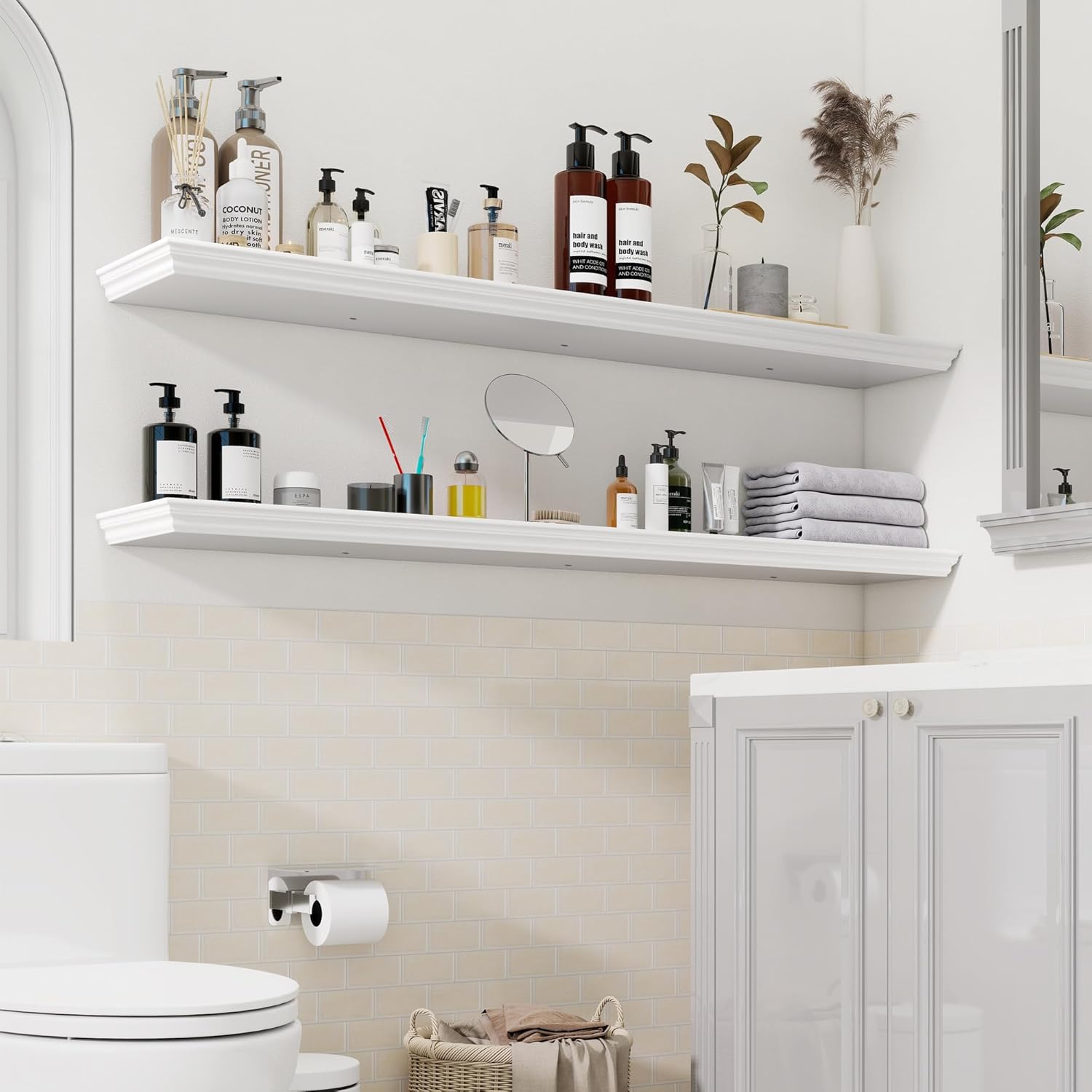 - Multi-Purpose Floating Shelves for Wall: Upgrade any space with these retro, sleek white shelves! Perfect as shelves for the room wall, book shelf for the wall, living Room, office, bedroom, bathroom, or kitchen shelves