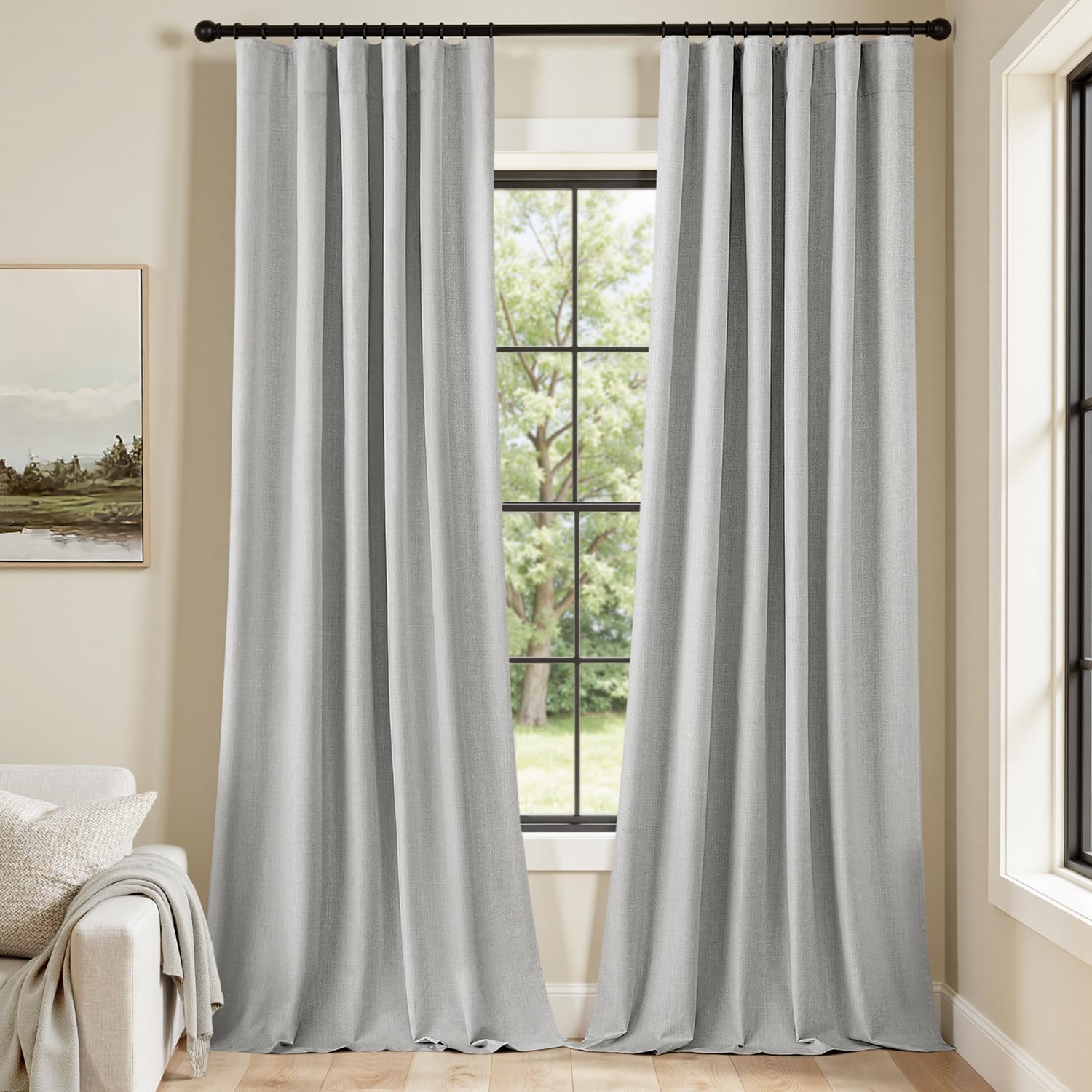 MIULEE 100% Blackout Curtains 108 Inch Long 2 Panels Set for Bedroom, Thick Luxury Faux Linen Black Out Curtain Room Darkening Back Tab Pleat Window Textured Drapes with Hooks for Living Room, Grey
