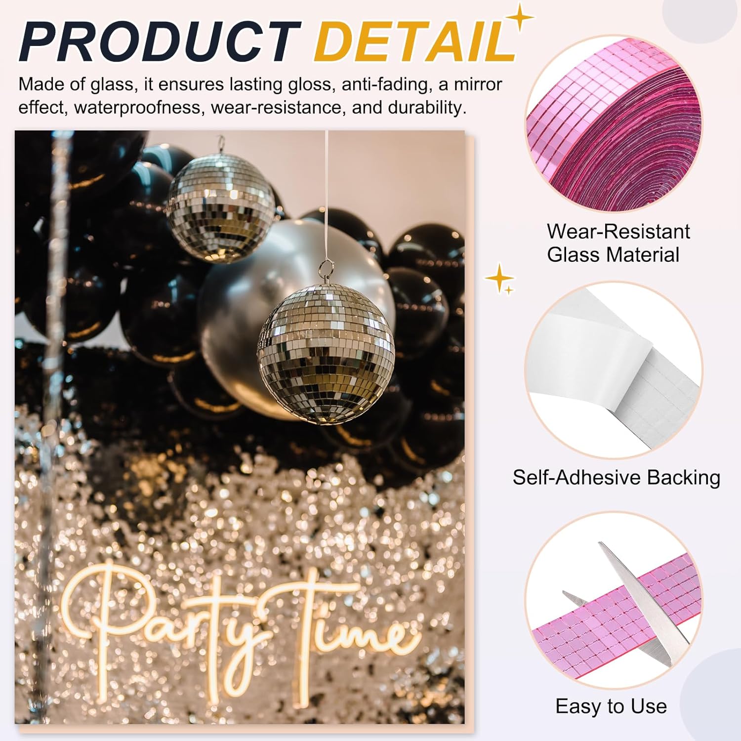 - These mirror mosaic tiles can be used for DIY disco balls, decorating vases, cups, mirrors, photo frames, hats and other craft projects. Can be used in bathrooms, kitchens, bedrooms, dance studios, walls, ceilings or floors, perfect for birthdays, weddings or theme parties, can add a happy atmosphere to the festival.