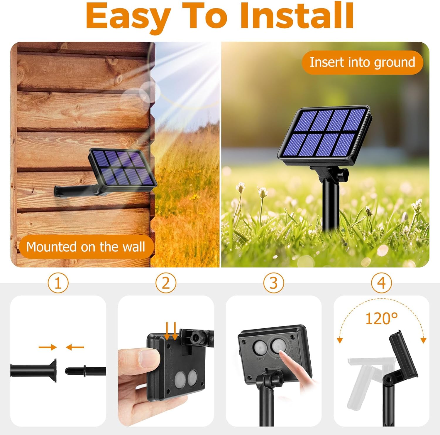 - Waterproof Design for All Weather: Light string and solar panel are IP65 waterproof to withstand any weather, either rain, sun, or snow. Safe for outside use, Don't worry about short circuits or bad weather damage (can't soak in water), glow with a orange purple light after rain, make your patio unique and mysterious