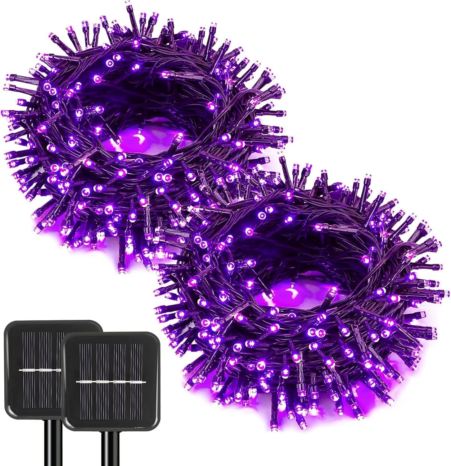 2 Pack Solar String Lights Outdoor, 200 LED Extra-Long 78 FT Solar Lights Outdoor with 8 Lighting Modes, IP65 Waterproof for Halloween, Garedn, Xmas, Balcony, Wedding, Party (Purple)