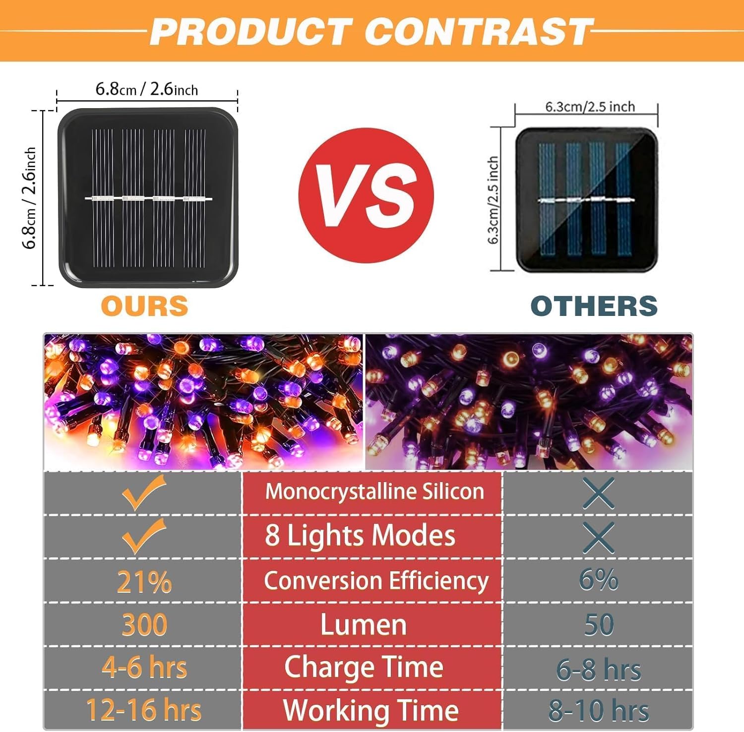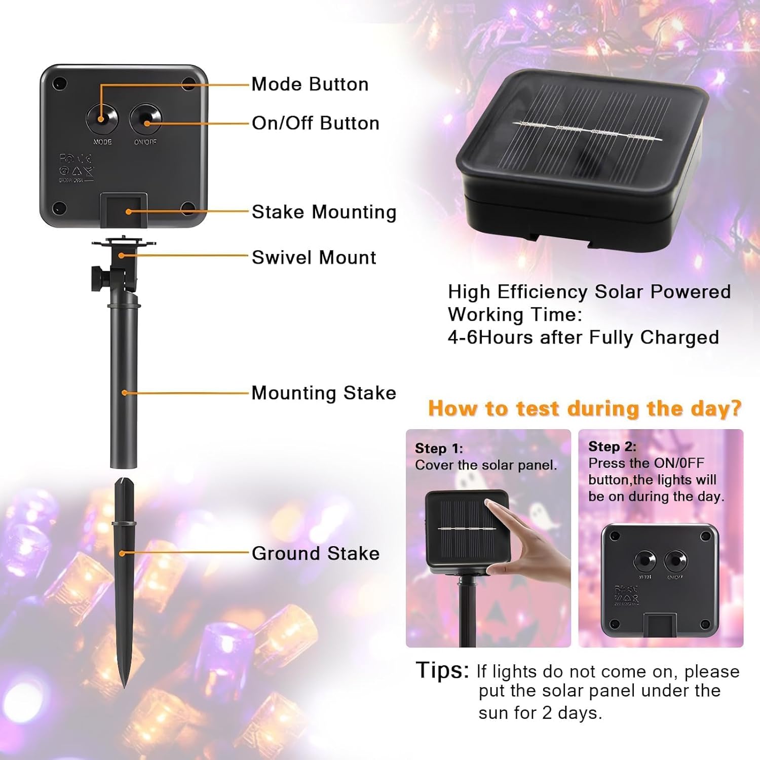 4-Pack Solar String Lights,156Ft Extra-Long 400 LED Waterproof Solar Halloween Lights, 8 Modes for Garden, Patio, Wedding (Purple & Orange)