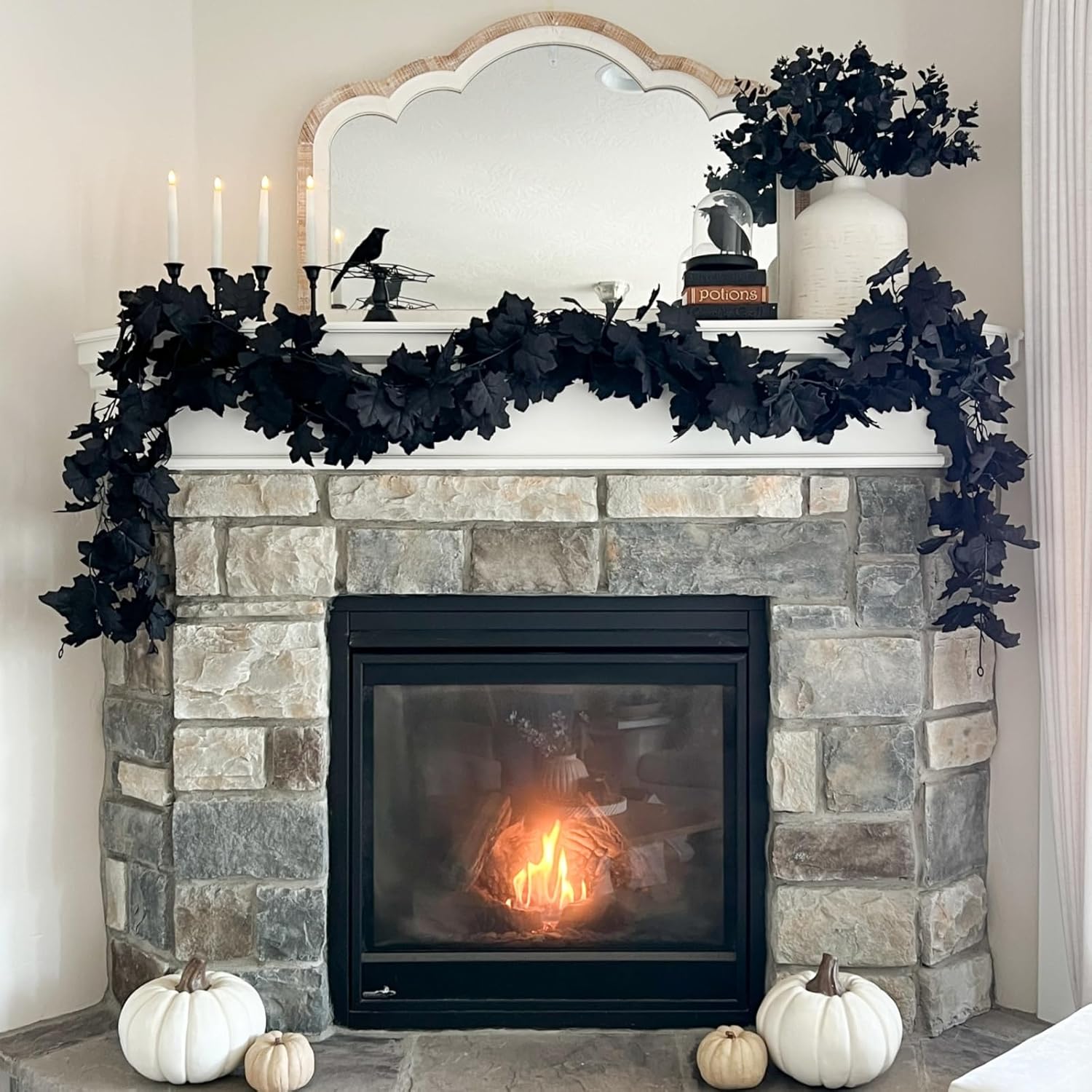 - DURABLE and REUSABLE: Sturdy and texture clear black garland are made of fabric, stems are made of plastic, but looks like real fresh preserved Hallowend Garland which is lightweight,no wilting, fading or get easily damaged. and adapt to all kinds of weather. Black fall maple leaves does not require any sort of special care.