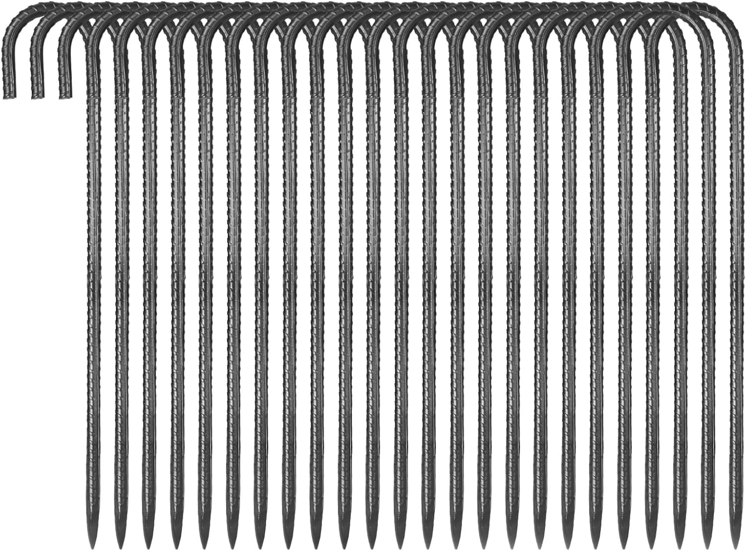 - Extended & Reinforced Design: 16-inch J hook rebar stakes features thick 0.4-inch diameter and comes in a 24-pack bundle. The extended length provides deeper anchoring and stronger pull resistance, ideal for high winds and tough terrain