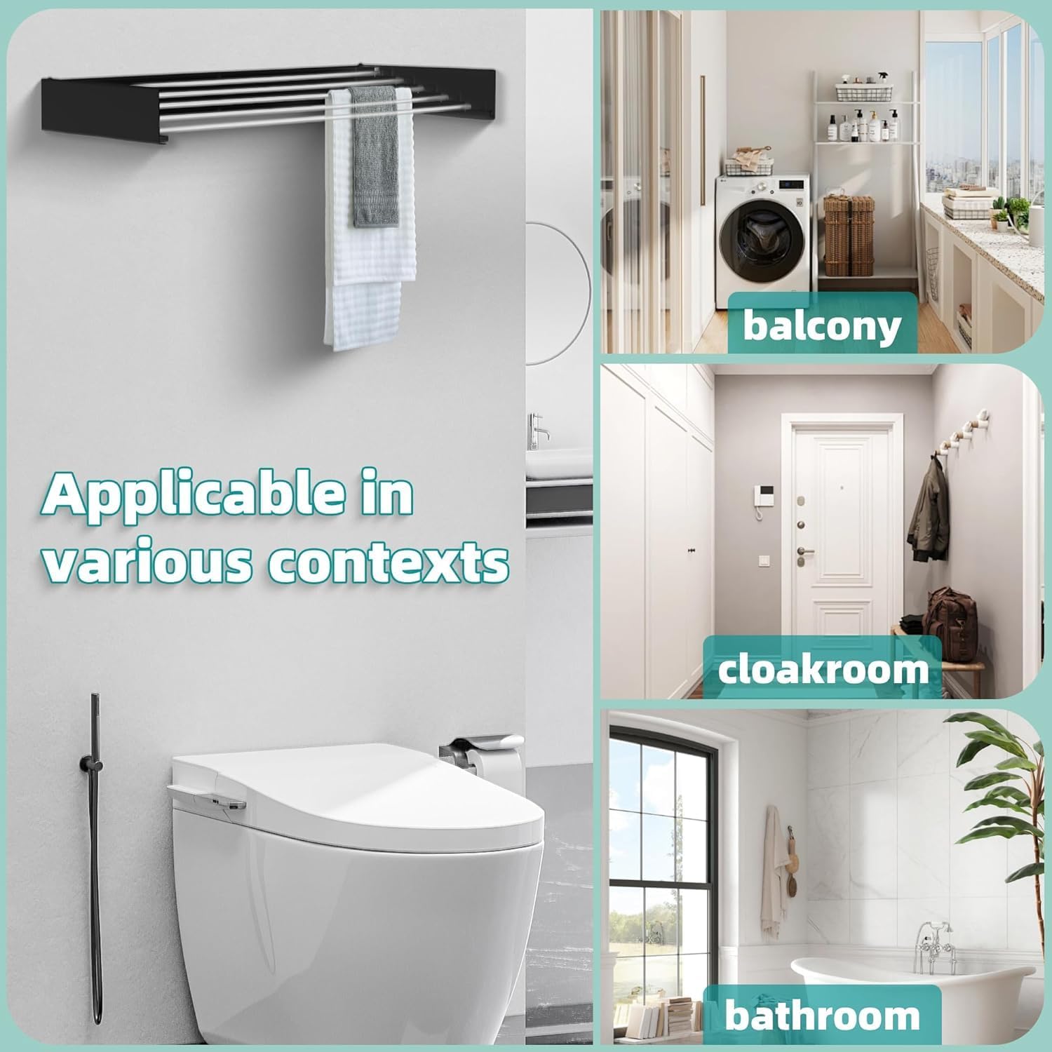 Laundry Drying Rack Collapsible, Wall Mounted Clothes Drying Rack. 39.37" Wide, 19.3 Linear Ft, 5 Aluminum Rods, with Wall Template, Screwdriver Bit (Black 1M)