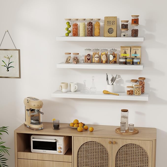 Fun Memories White Floating Shelves 36 Inch Long, Rustic Farmhouse Bathroom Shelves Over Toliet, 36 x 8 Inch Floating Shelves for Wall, Deep Wall Shelf for Living Room, Kitchen, Bedroom, Set of 2