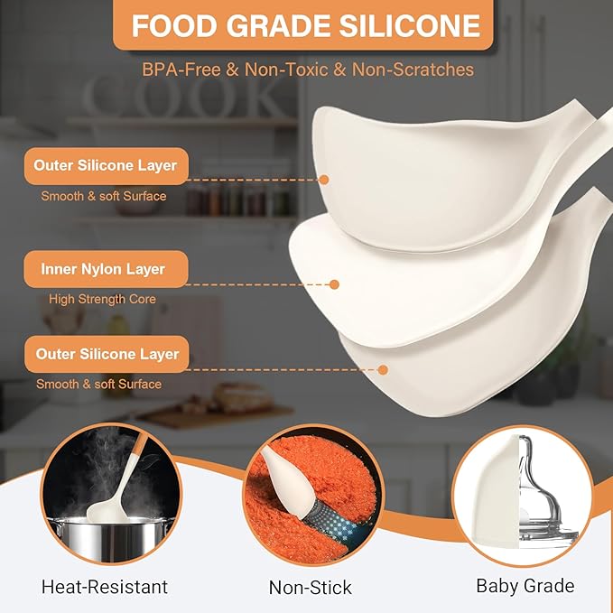 - 👨🍳【Premium Food Grade Silicone】All silicone utentils tools are made of top grade 100% BPA-free silicone material, which is food safety and prevent from scratching your cookware such as nonstick pots and pans. Besides, our silicone kitchen utensils set is workable at high temperature resistance up to 446 ° F/230 ° C. This cooking utensil set is a ideal choice to meet your long lasting using.
