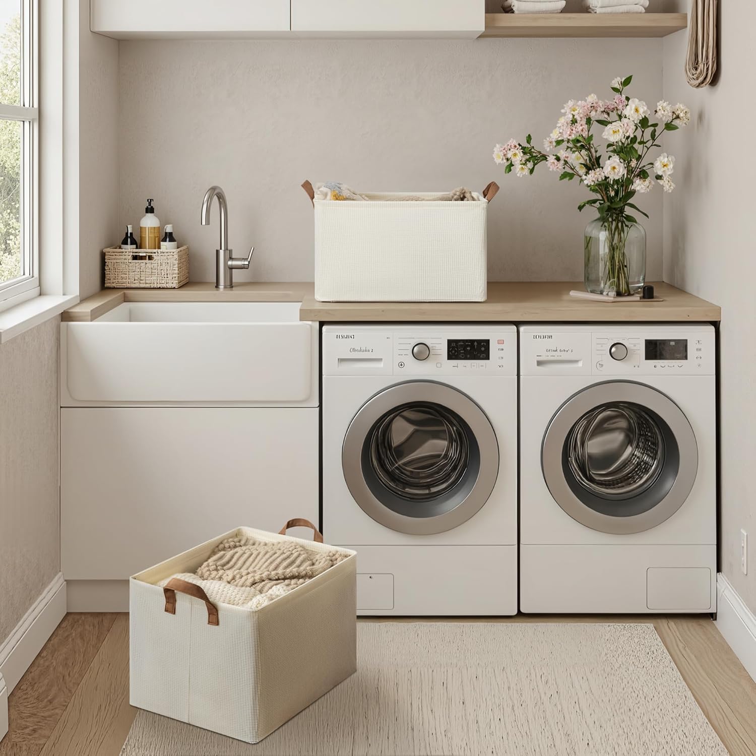 - Handle with Ease: With the 2 PU handles securely riveted to the sides of the storage bin, you can easily carry items without tearing the handles.