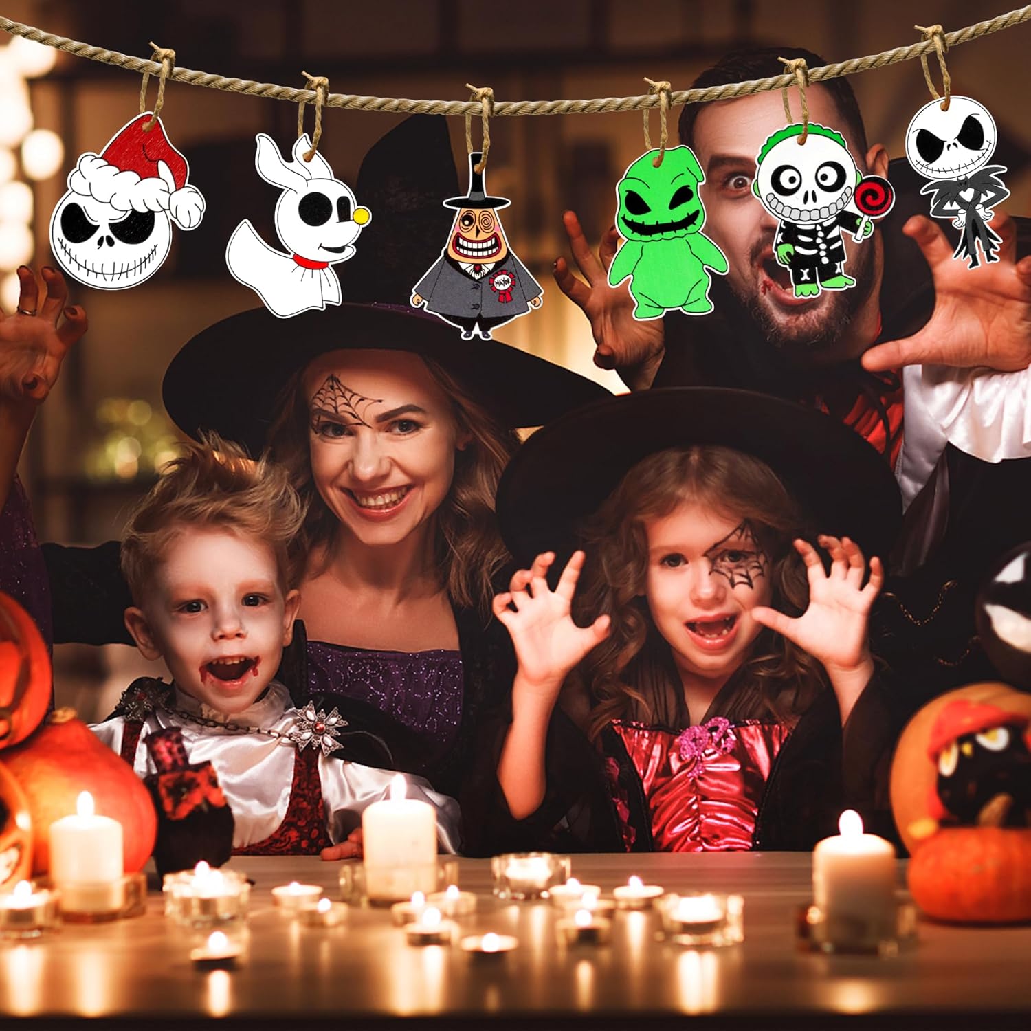 - 【Easy to Hang】Made of quality wood, sturdy and not easy to break, each ornament has pre-cut hole and paired with a hemp rope, making it easy to hang even for kids. You can easily hang them on any places you want before Halloween and you can take them down to store in closet for next use.