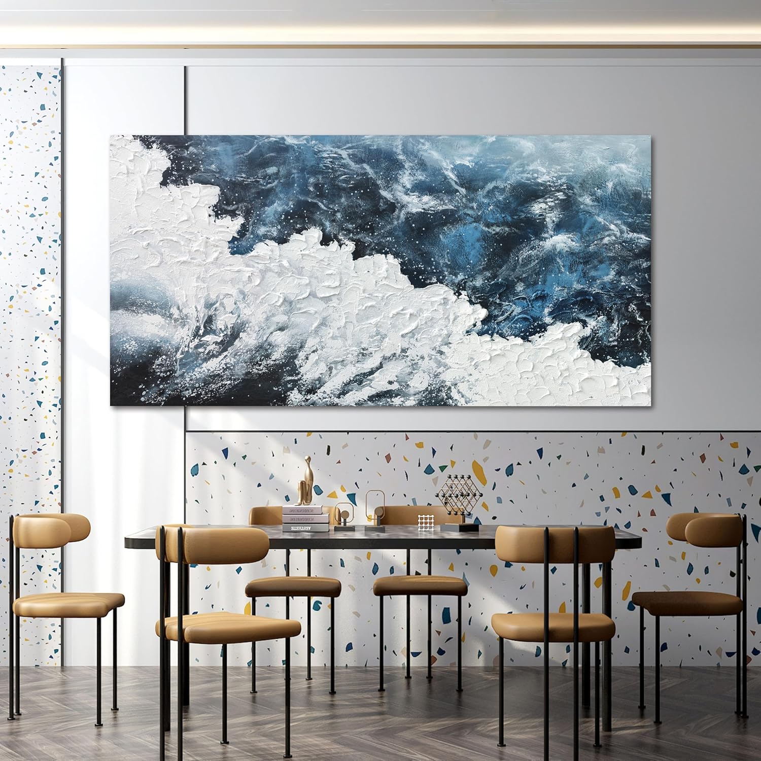 Canvas Wall Art Decor Large Blue White Wall Art Prints Abstract Canvas Wall Pictures for Living Room Oversized Artwork for Walls Coastal Modern Wall Art Decorations Bedroom Office Wall Art Decor 29" X 58"
