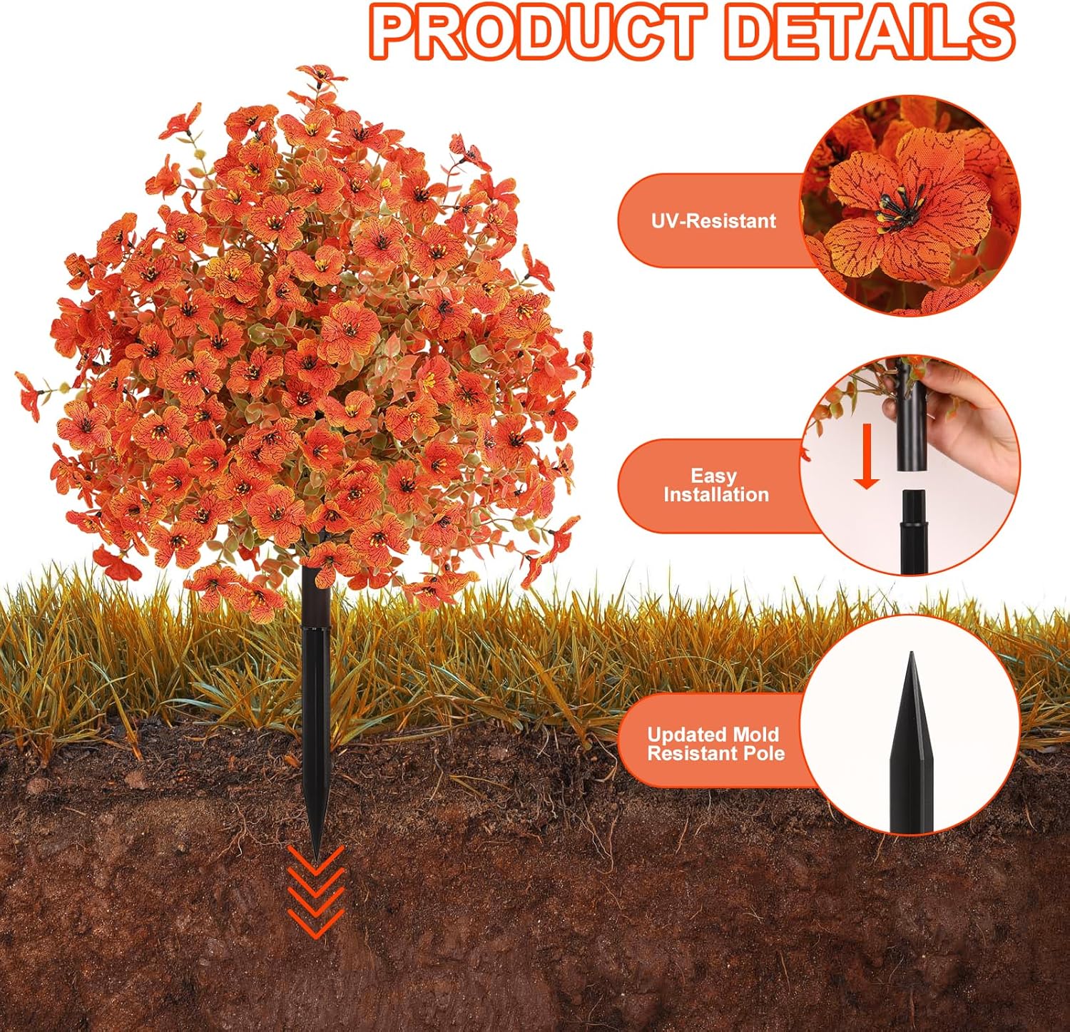 - 🍂【Instant No-Tool Setup】 Transform any space in seconds! Just connect the two parts of greenery artificial fall flowers, fluff them into shape, and push the sturdy ground spikes into soil - no tools or assembly needed. Perfect for quick, seasonal decorating that's completely hassle-free."