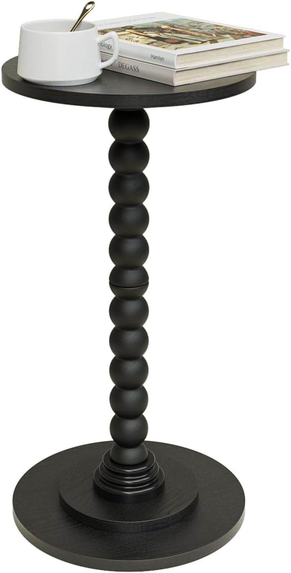 Masupu Round Side Table, Small End Table for Small Spaces, Pedestal Drink Table with Solid Wood Leg for Living Room, Bedroom, Corners(Black)