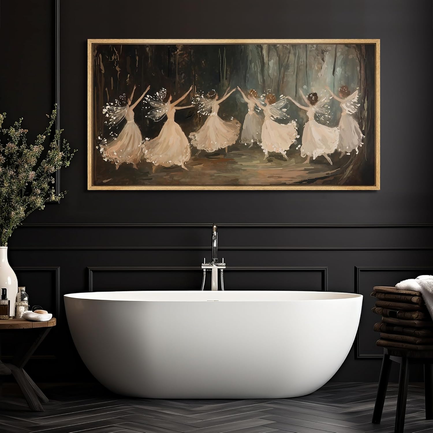 MUDECOR Extra Large Framed Canvas Print Wall Art Ballet Dancers in Motion Romantic Impressionist Dance Scene Illustrations Decorative Colorful Multicolor for Bedroom - 60"x30"