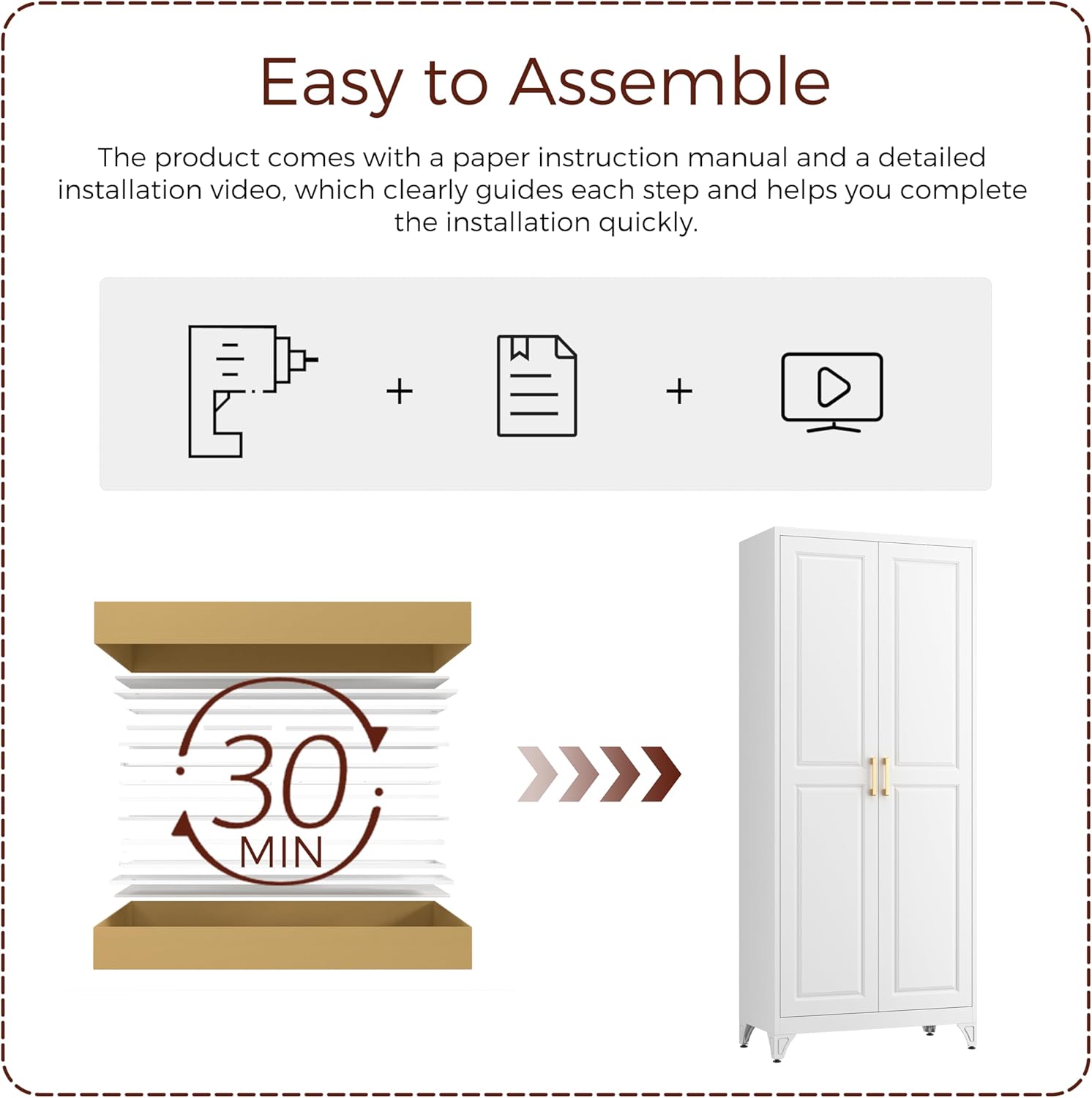 75" Kitchen Pantry Cabinet, White Metal Storage Cabinets with 2 Doors and 4 Adjustable Shelves, Tall Pantry Storage Cabinet for Kitchen, Dining Room, Living Room