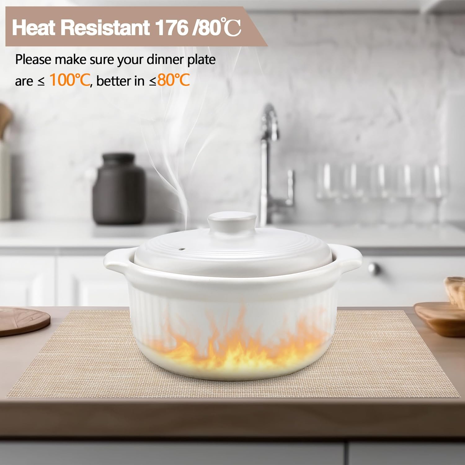 - Heat Resistant: Please make sure your dinner plate are β€ 100β, better in β€80β. It can prevent the table from slipping and scalding the countertop. These beautiful stylish vinyl place mats to add more fun to your dining table