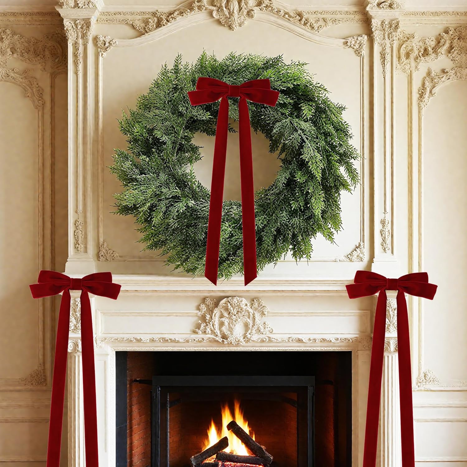 - Versatile Holiday Decor: Ideal for decorating Christmas trees, wreaths, garlands, staircases, windows, doors, porches and fences. These velvet ribbon bows instantly elevate your holiday decorations, creating a warm and joyful atmosphere for parties, gatherings and holiday celebrations.