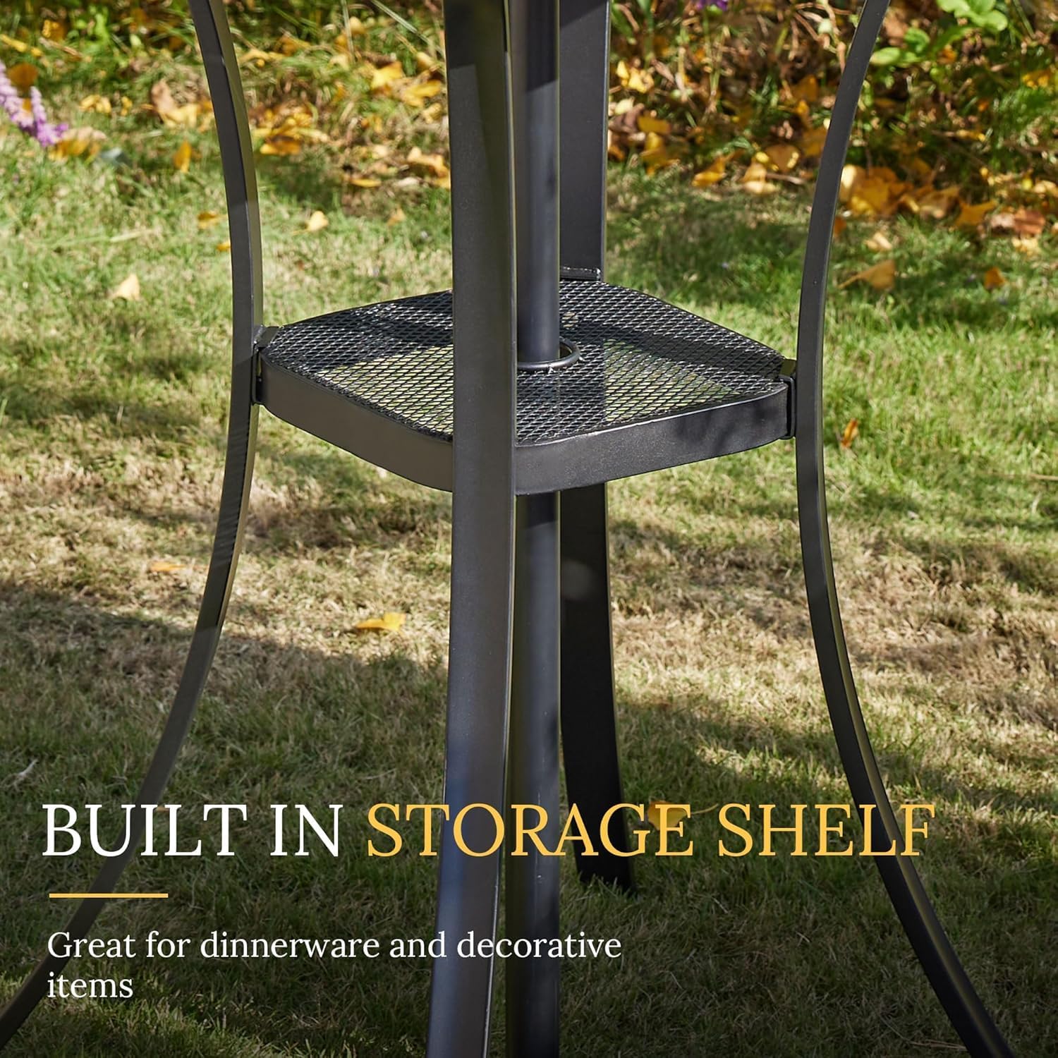 - ăUmbrella HoleăPut an umbrella in the center of the counter height outdoor table, avoid direct sunlight. Accommodate 2-4 people for a delicious meal, BBQ, and outdoor camping