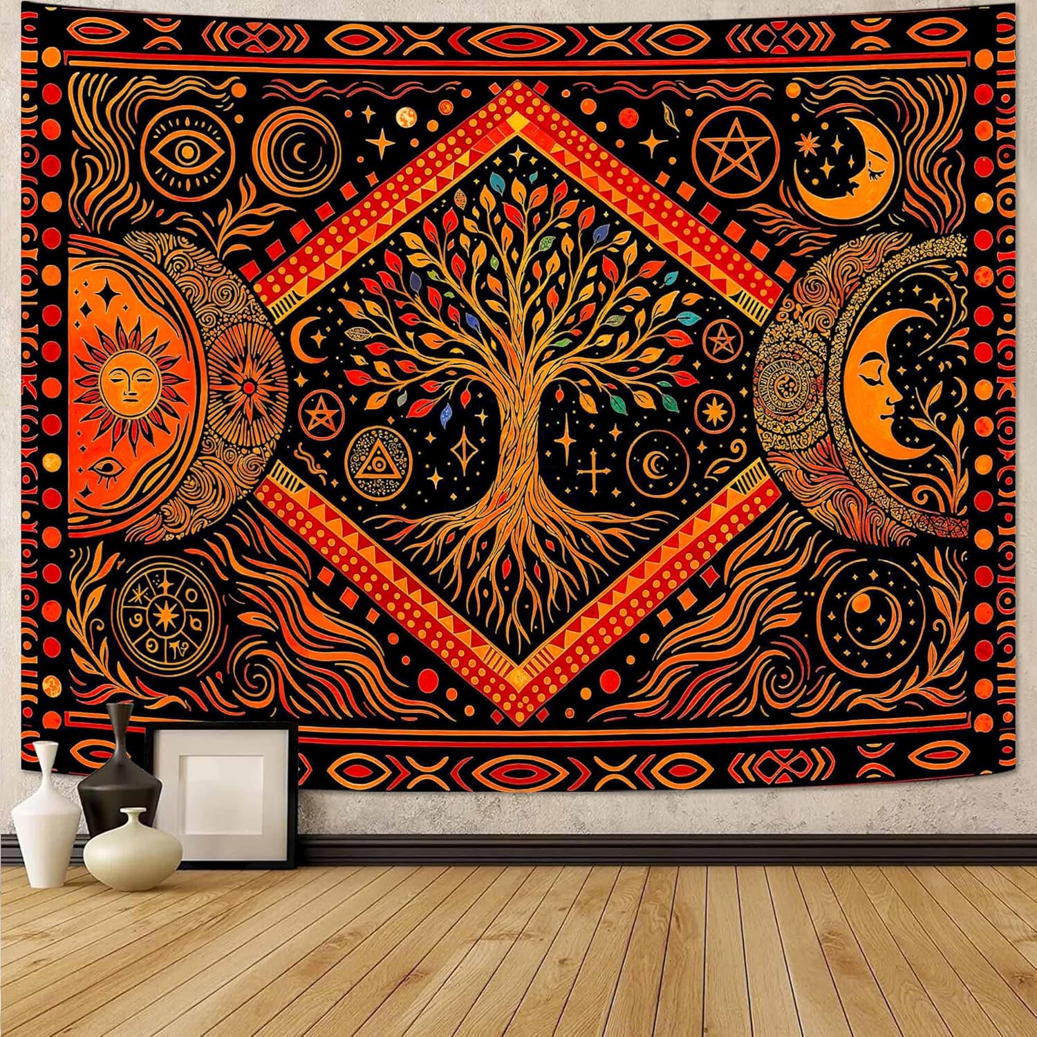 Lunerfex Tree of Life Sun Moon Stars Wall Tapestry, Cosmic Harmony Symbol Tapestries for Home Decor, Mystical Tapestry 90x70 Inch