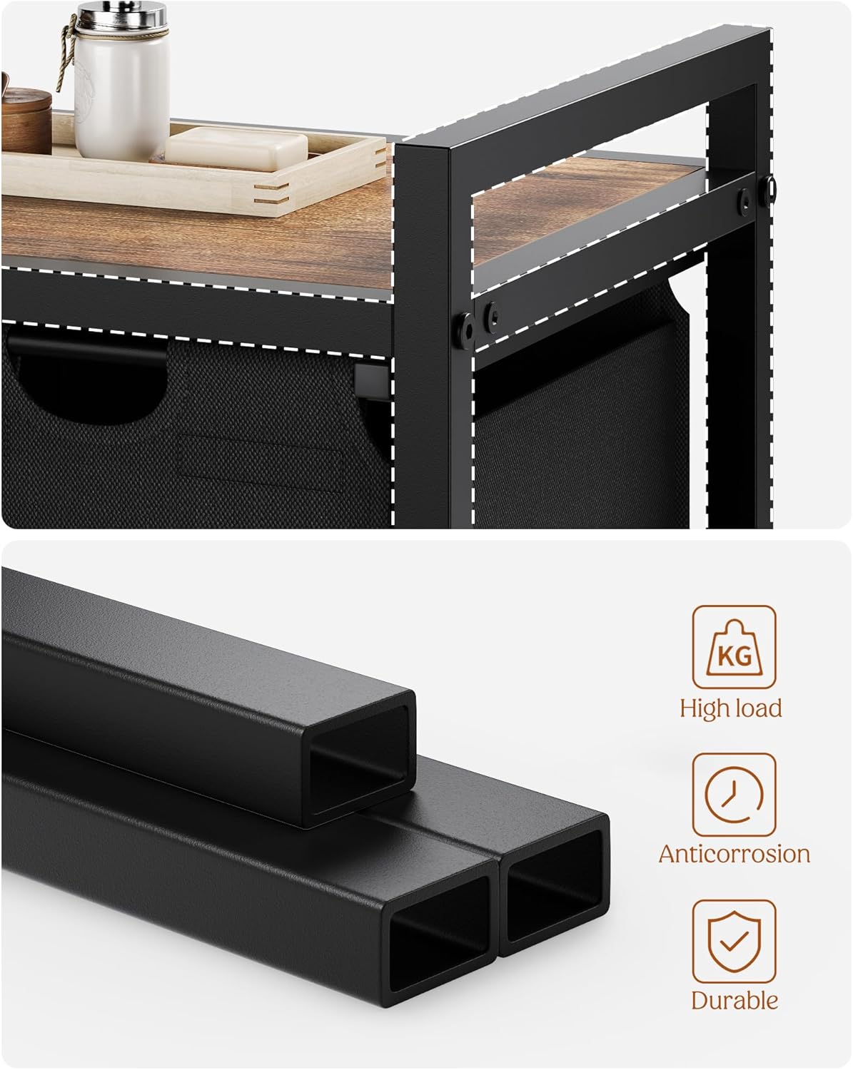 - Robust & Stable: This laundry organizer is made of particleboard and iron, which offers reliable strength and stability. The adjustable feet and anti-tip kits help prevent unwanted wobbles or accidental tipping.