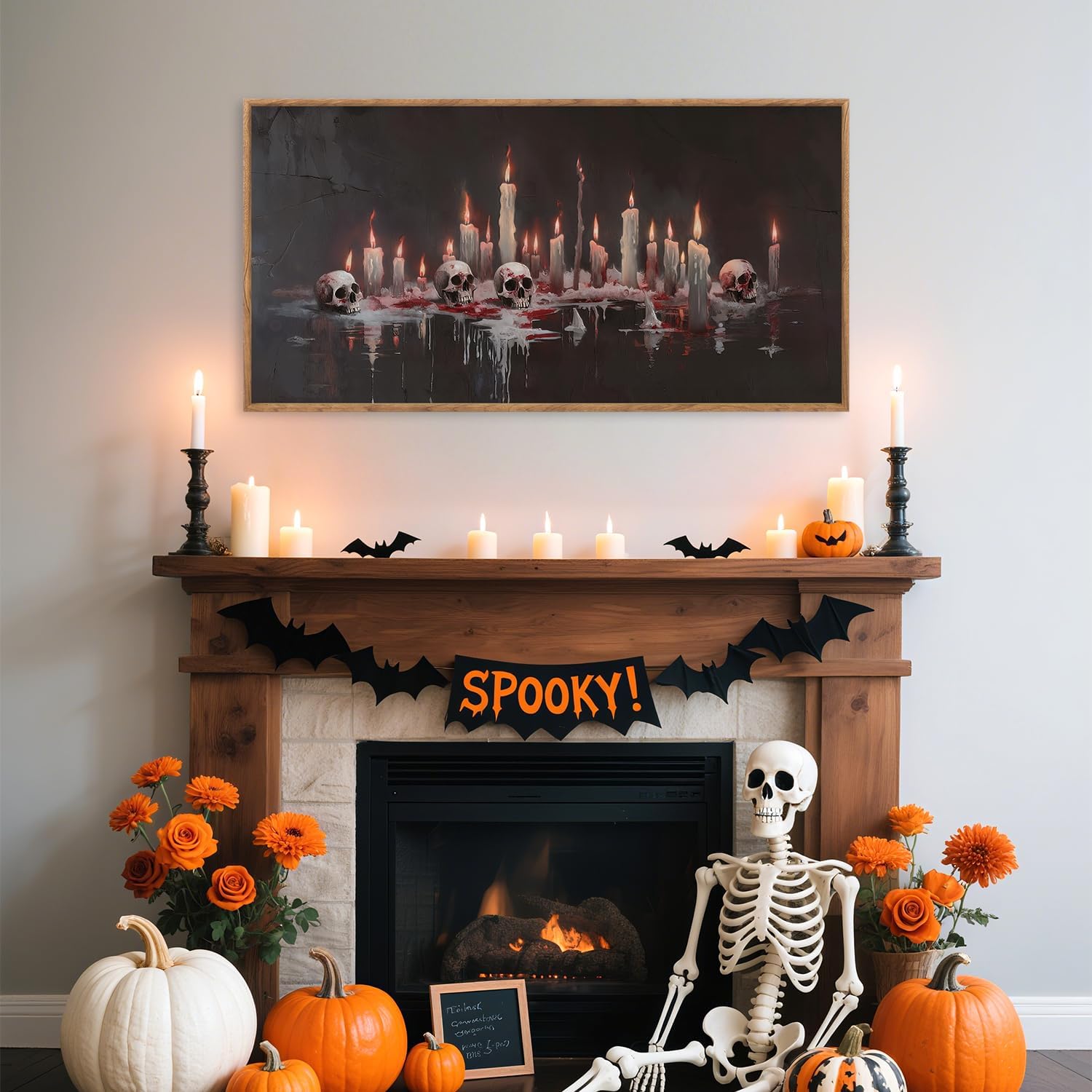 Aurlan Gothic Bloody Skull and Candles Framed Wall Art(40"x20"), Large Horror Dark Academia Halloween Skeleton Canvas Artwork, Modern Goth Spooky Creepy Ghost Decor for Home Office Bedroom