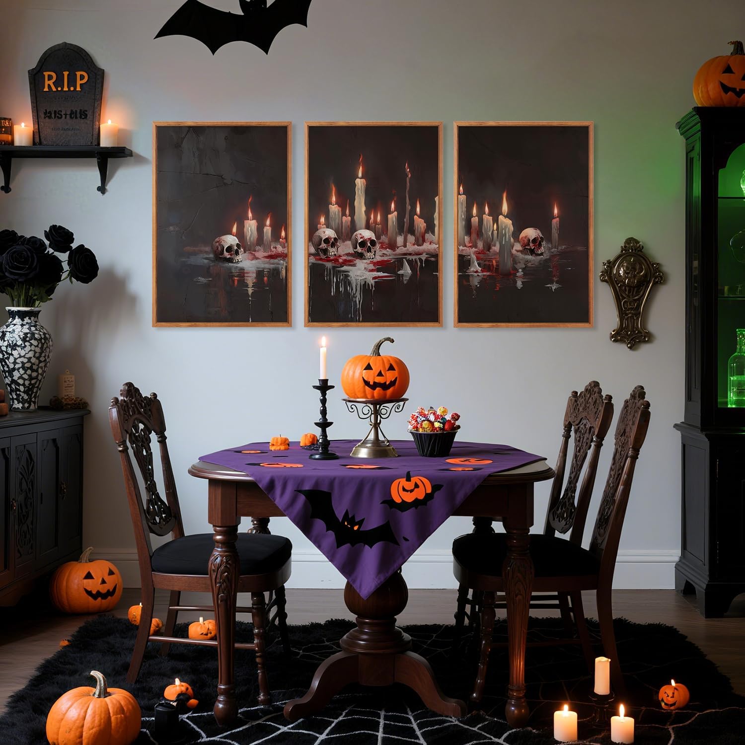 - Gothic Bloody Skull and Candles-- The details of Aurlan halloween wall art set of 3 are exquisitely processed, such as the melted wax on the candles, the reflections and bloodstains in the liquid. The overall image gives people a sense of horror, mystery, and religious rituals.