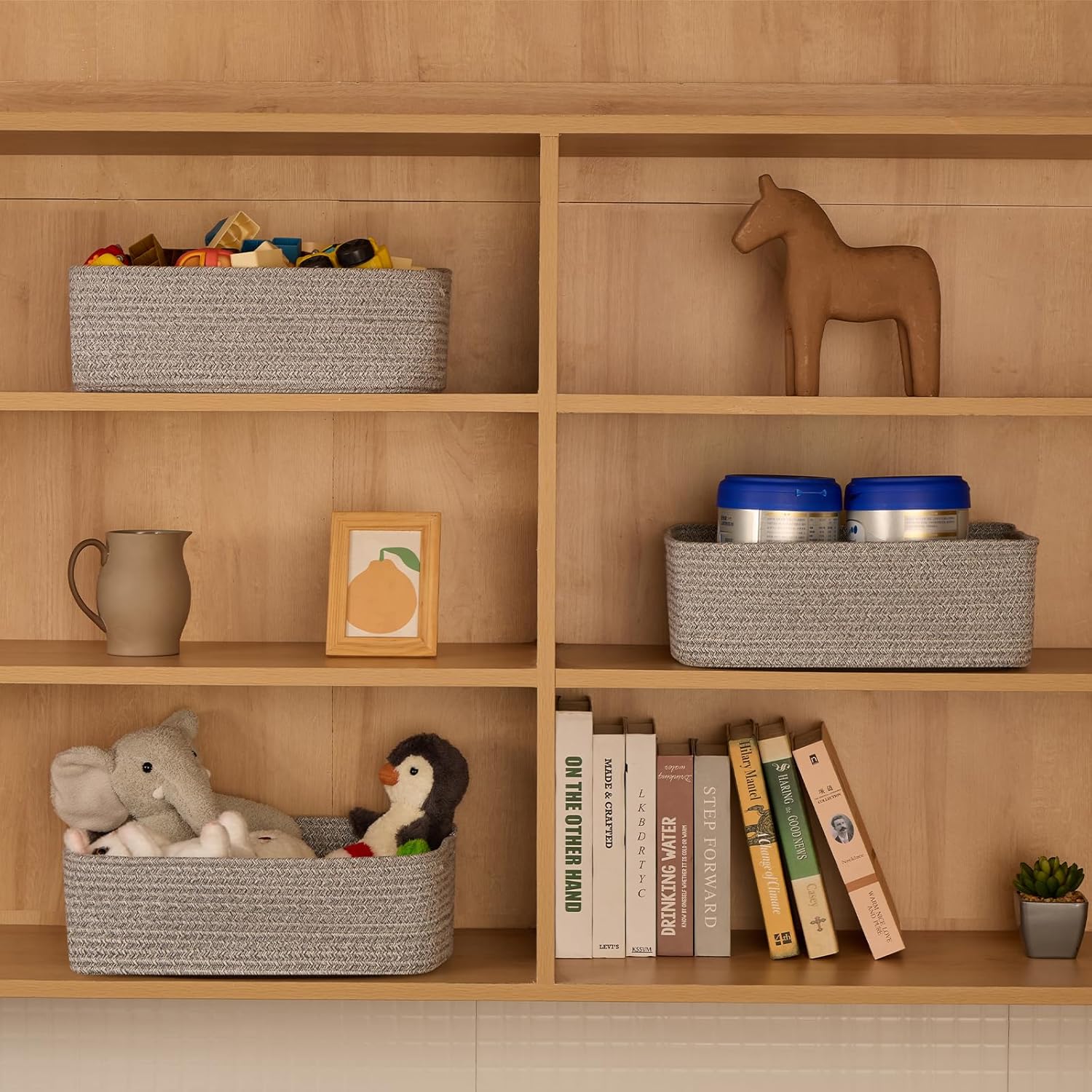 - [ Stylish & Versatile ]: Great for organizing small items on desks, in closets, wardrobes, or dressers—these cute baskets add texture to any living room, bedroom, or bathroom, appealing to fans of modern minimalist design