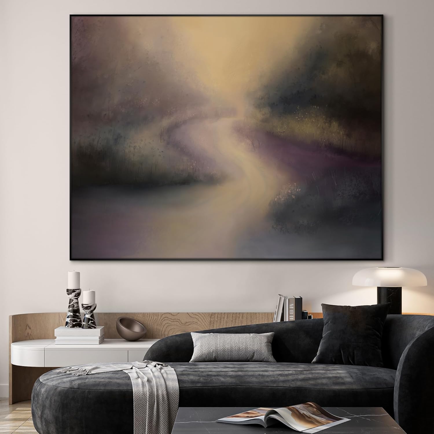 SIGNWIN 46"x60" Extra Large Framed Wall Art Golden Light River Path Dreamy Impressionist Landscape Illustration for Home Living Room Bedroom Decor (Frame Assembly Required)
