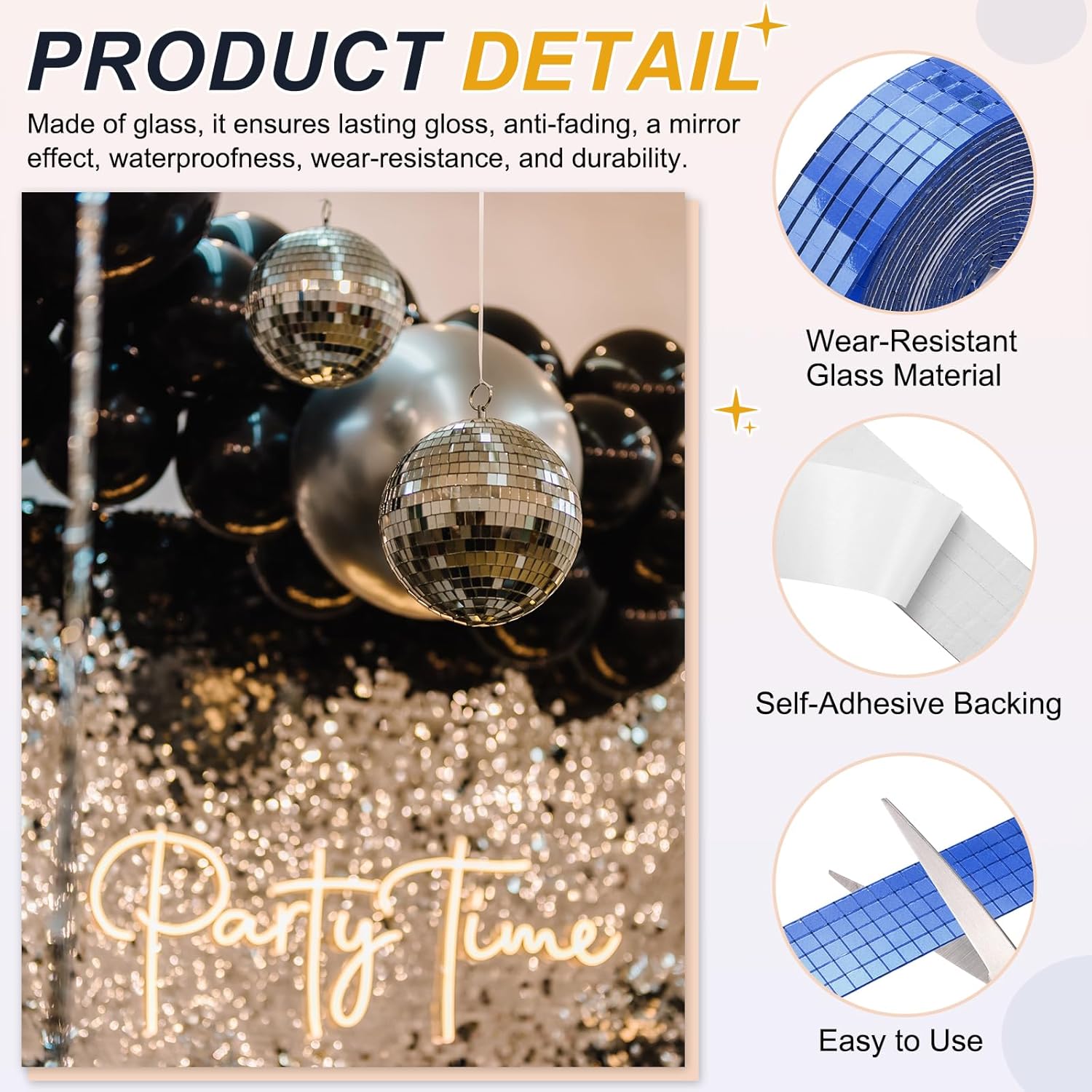 - These mirror mosaic tiles can be used for DIY disco balls, decorating vases, cups, mirrors, photo frames, hats and other craft projects. Can be used in bathrooms, kitchens, bedrooms, dance studios, walls, ceilings or floors, perfect for birthdays, weddings or theme parties, can add a happy atmosphere to the festival.