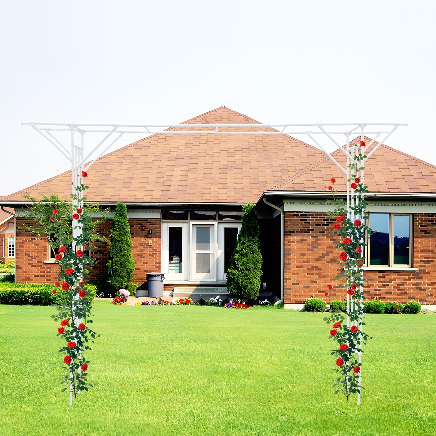 Garden Trellis for Climbing Plants,Outdoor Garden Arch Arbor Trellis,Steel Garden Trellis Wedding Arches for Ceremony Decoration 11.81x1.31x8.86ft (White)