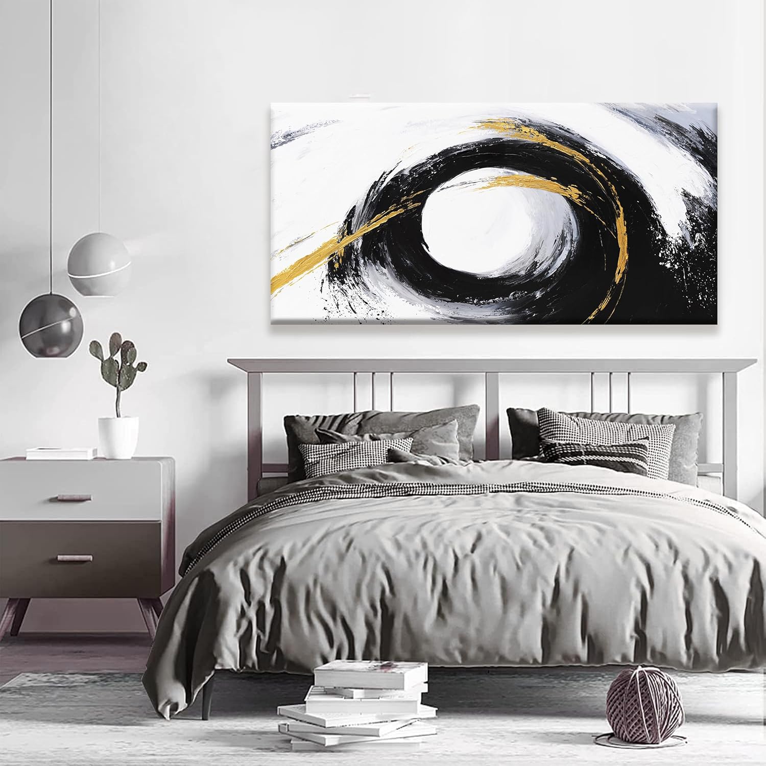 QSQ Black And Gold Wall Art Modern Abstract Wall Decor Canvas Prints Picture White Canvas Art Wall Decor Modern Abstract Wall Artwork Bedroom Living Room Office Home Decoration 24" X 48"