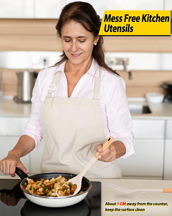 - Thoughtful Design: The little bulge design prevents the silicone head from touching the cooktop after cooking, effectively keeping the surface clean;Wooden handle keeps you away from the trouble of kitchen utensils rusting or breaking