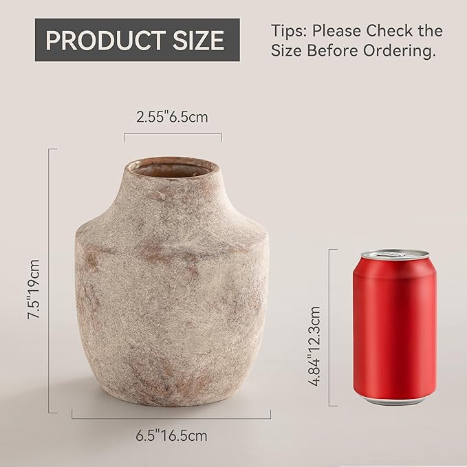Mitt&Ditt Ceramic Flower Vase, 7.5 inch Off-White Farmhouse Rustic Vase, Handcrafted Weathered Pottery Vases, Small Flower Terracotta Vases for Home Decor, Living Room, Table, Shelf