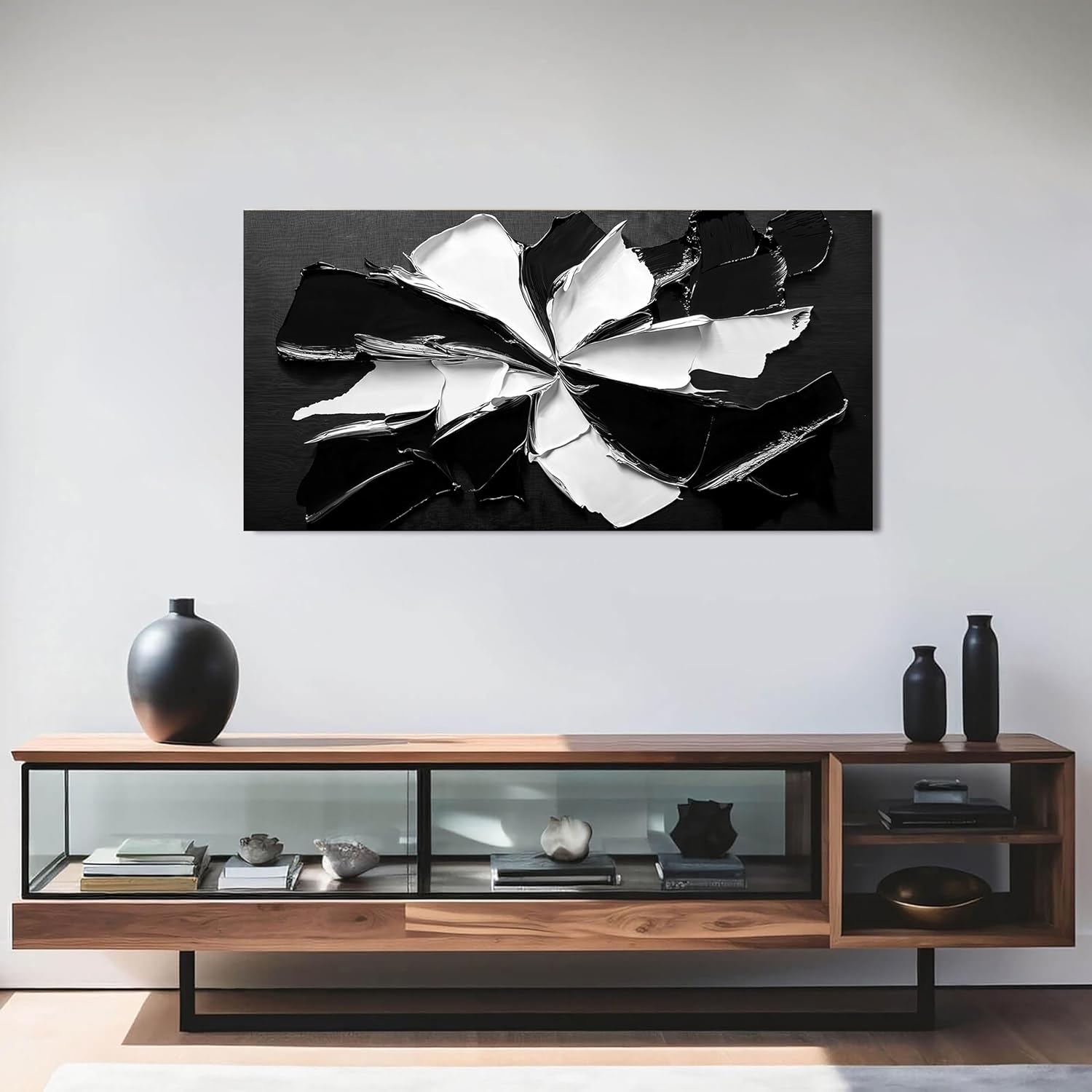 Abstract Wall Art Decoration Modern Wall Art Pictures for Living Room Abstract Canvas Art Wall Decor Minimalist Black and White Wall Art Prints Flowers Artwork for Walls Office Home Decor 20"X40"