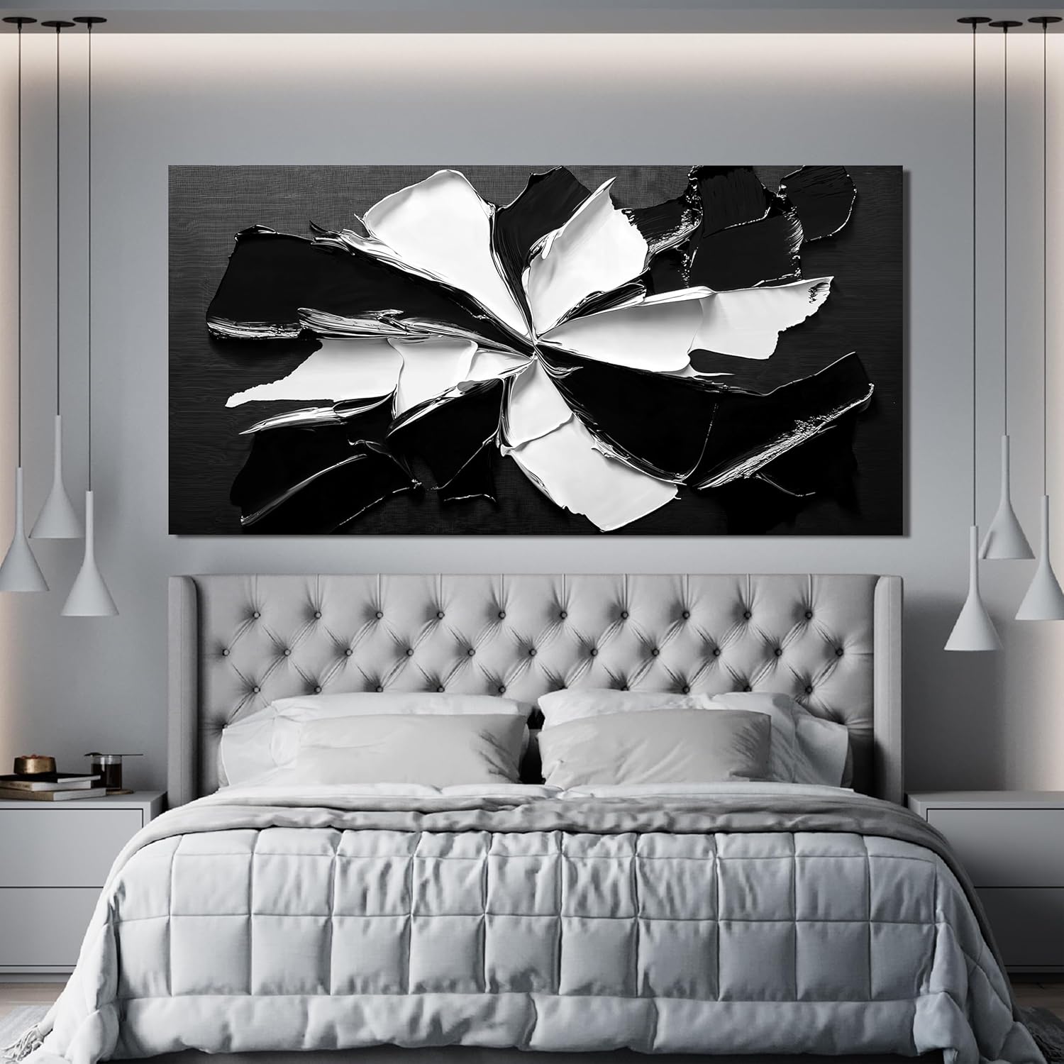 Abstract Wall Art Decoration Modern Large Wall Art for Living Room Abstract Canvas Art Wall Decor Minimalist Black and White Wall Art Prints Flowers Artwork for Walls Bedroom Office Decor 24"X48"