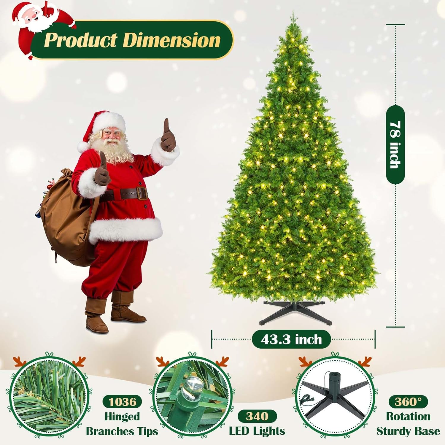 - Dual-Mode LED Magic : Switch between 400+ warm white LEDs for a classic glow, OR vibrant multi-color lights for party vibes—all pre-attached