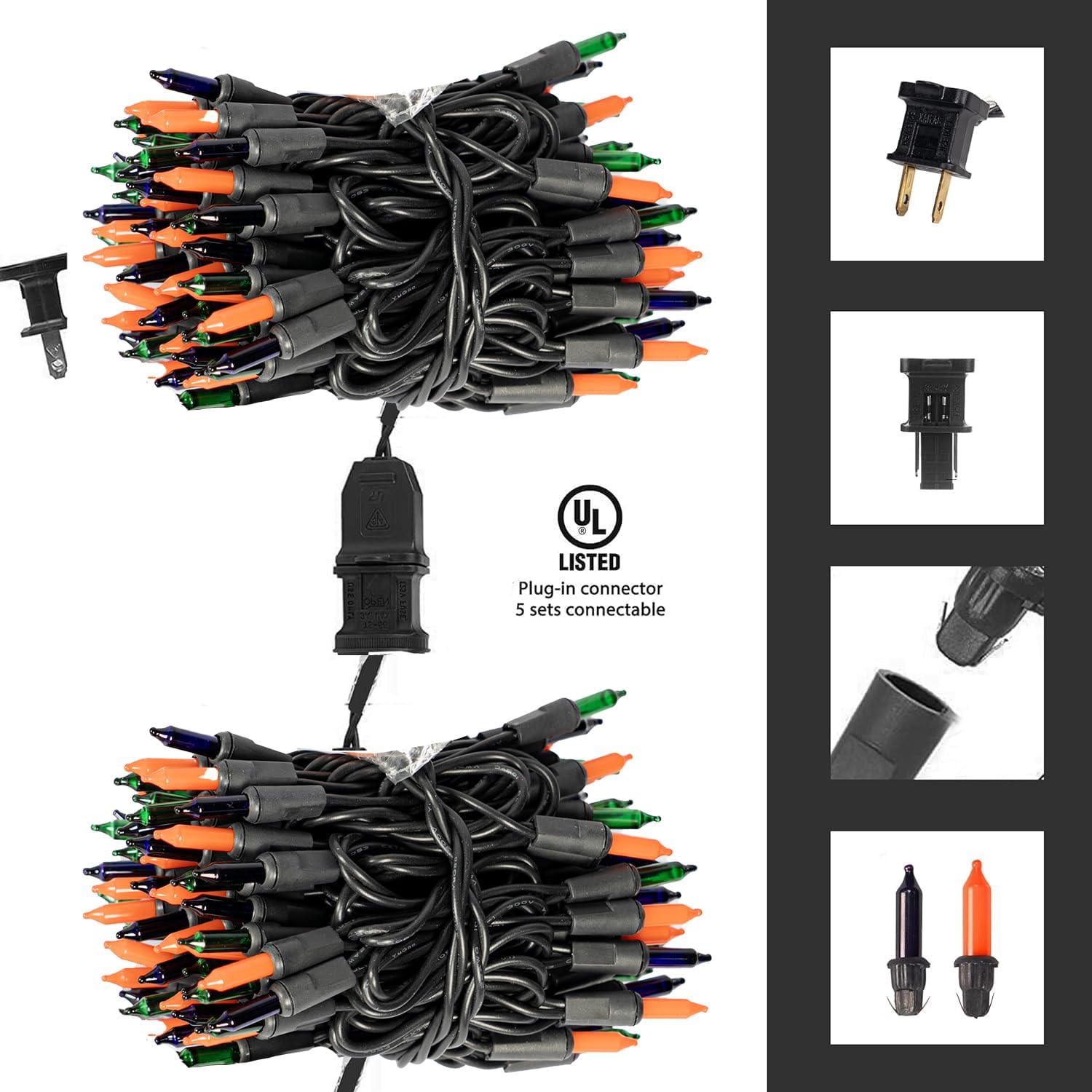 - Safe and Durable: The bulb is firmly connected to the base, so there is no need to worry about the bulb falling during the decoration process. Waterproof IP 44, the light string has a built-in fuse, pass UL safety certification, safety for use, suitable for indoor outdoor Halloween Xmas tree, party decoration