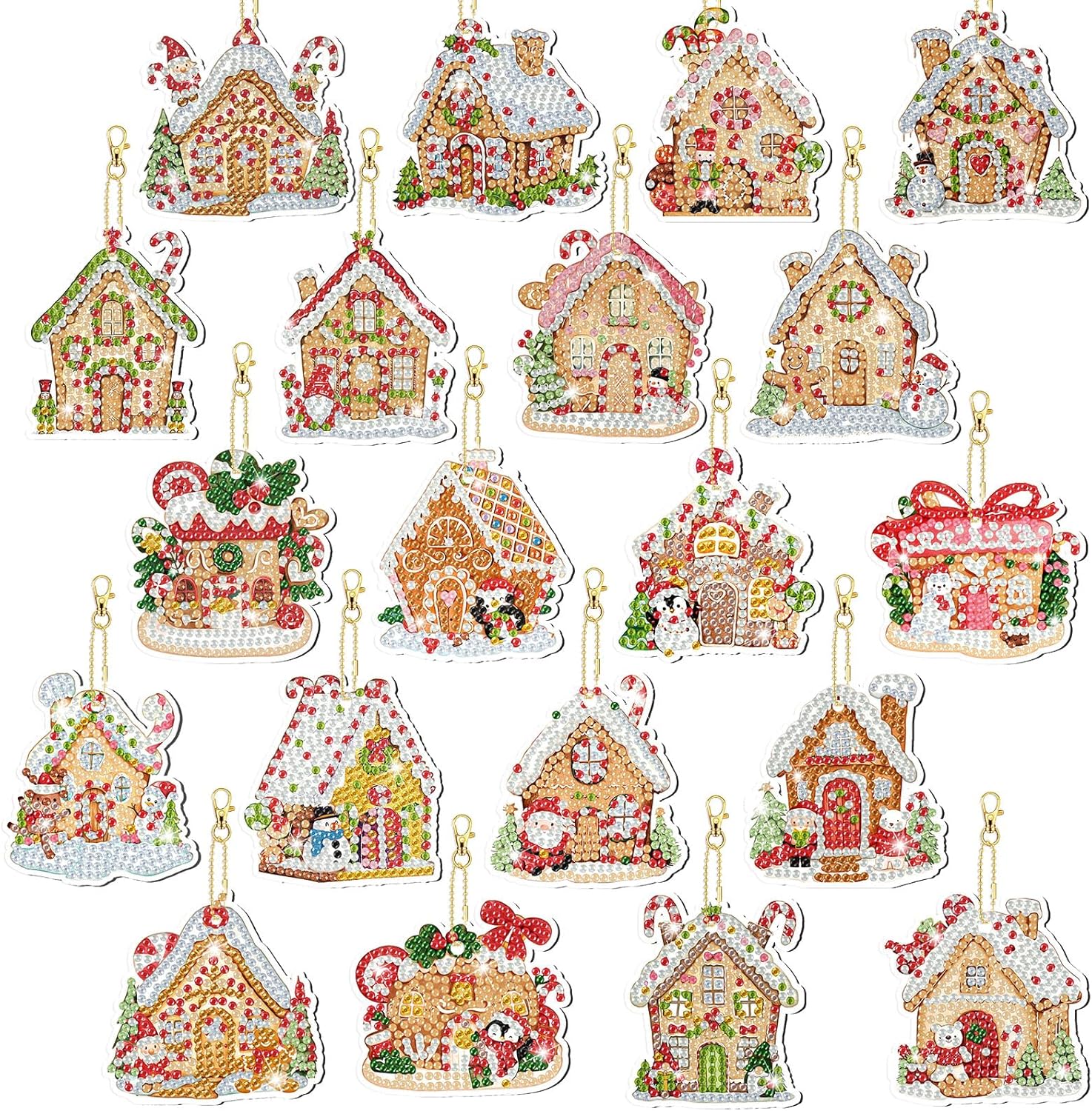 - Package Including: our package contains 20 gingerbread house shape Christmas diamond painting keychains with tools, which are suitable for those who like DIY; Plenty to use for multiple projects or share with friends and family for a fun Christmas together
