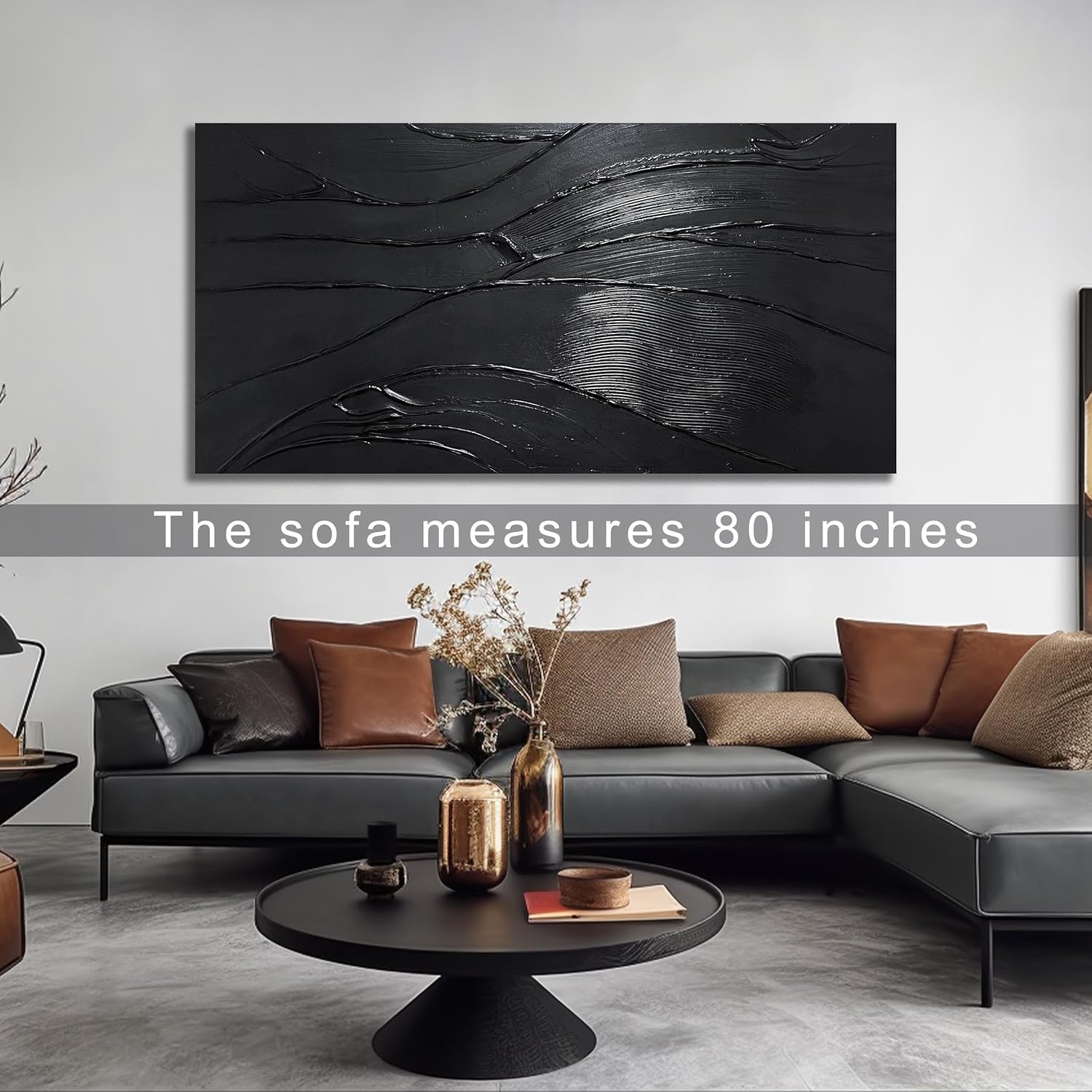Modern Oil Painting Wall Art For Living Room Black Abstract Canvas Wall Art For Office Huge Artwork For Hotel Size 36 x 72 Inch