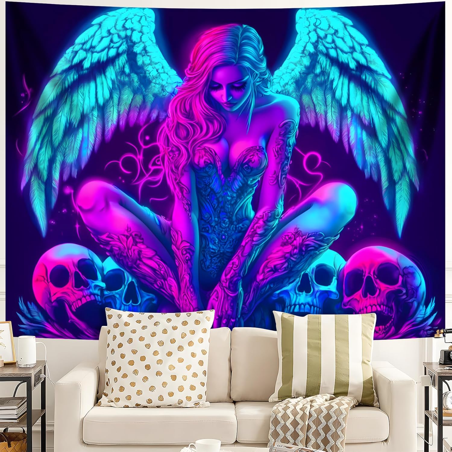 Blacklight Tapestry,WingTapestry Glow In The Dark,UV Reactive Black Light Upright Posters Wall Hanging for Bedroom Dorm Living Room Backdrop Decor (wing15, 79L" x 59W")