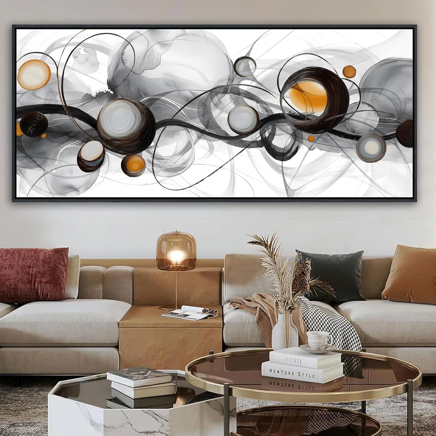 - Large Size Frame Wall Art for Living Room - 86x39 Inches Abstract Artwork Minimalist Painting Modern Black and White Canvas Picture Boho Gray Wall Art