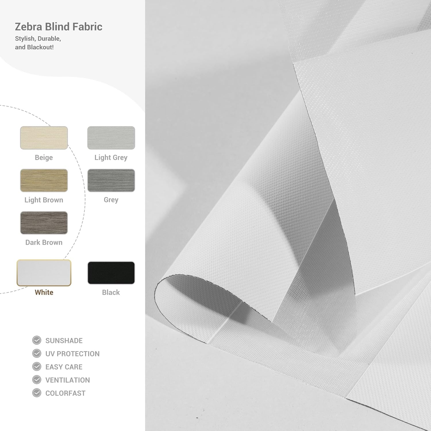 Cordless Zebra Blinds for Windows, Blackout Interior Blinds,Easy to Install,UV Protection,for Offices and Home,Custom Roller Shades, Solid White, 36" W x 56" H