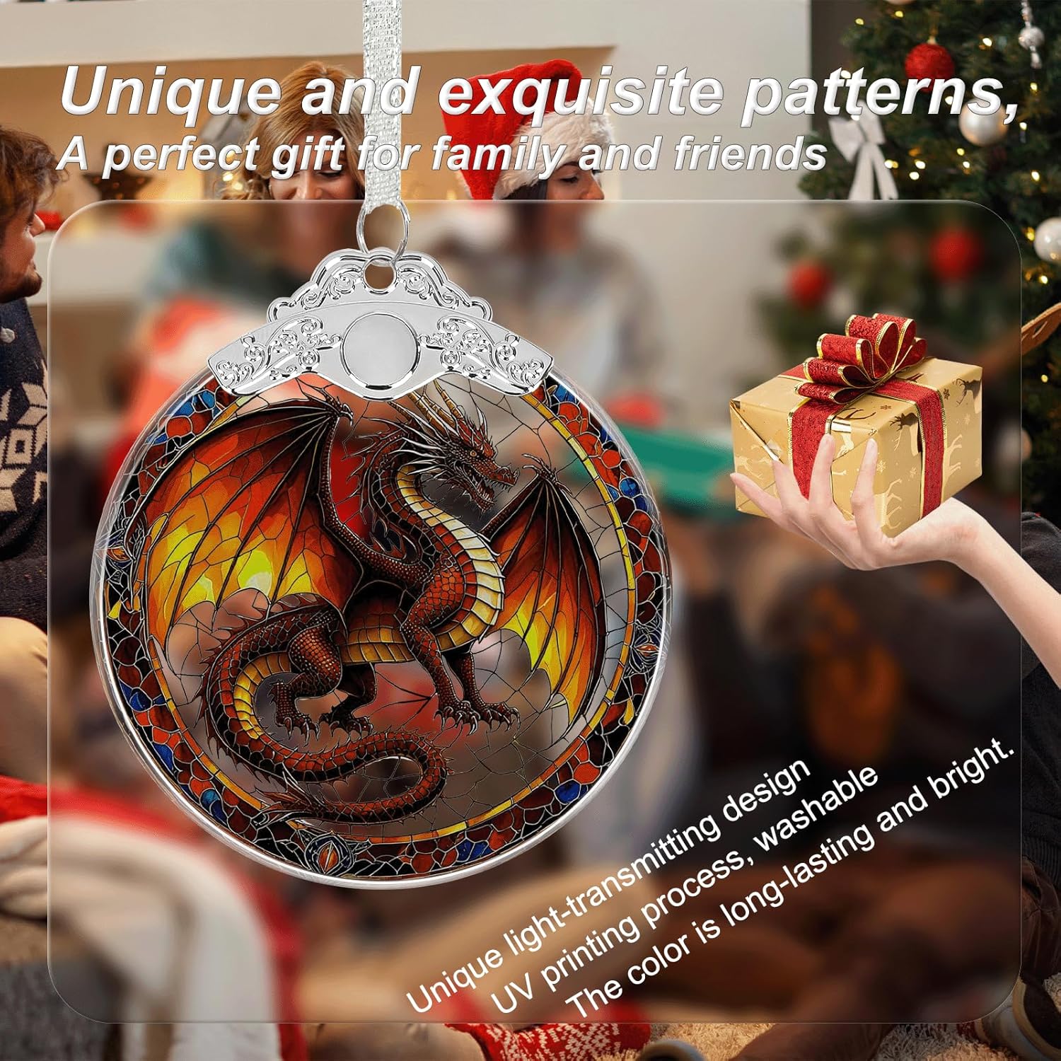 Dragon Stained Glass Christmas Ornament - Hanging Ornaments for Christmas Tree Decorations -Holiday Keepsake Present Exchange Idea