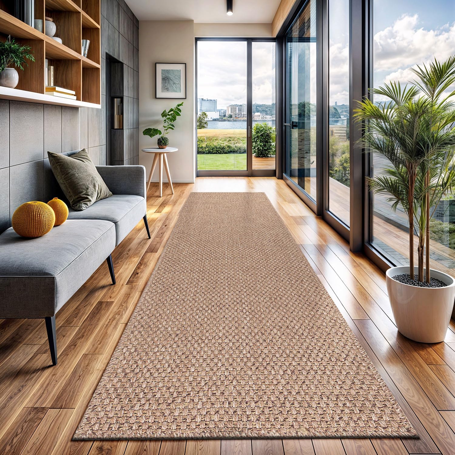 - [ EASY JUTE RUG ] Experience the enchantment of a resilient rug mimicking the appearance of natural jute, courtesy of our latest Easy-Jute rugs. (Jute-free in reality) Crafted from secure polypropylene, these rugs are resistant to cracking, ensuring they remain free from scratches, shedding, or unraveling over time.