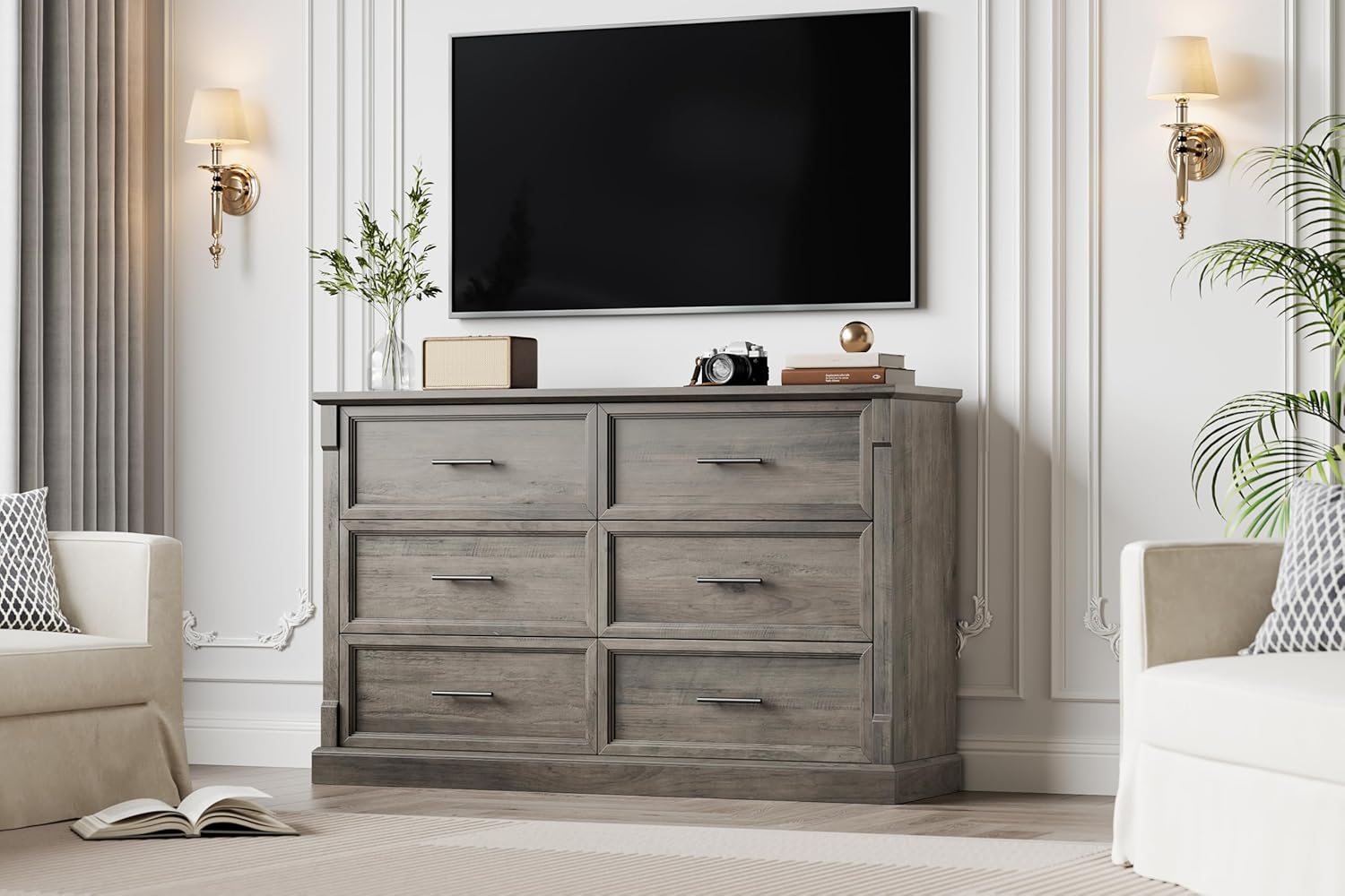 GAOMON Grey 6 Drawer Dresser for Bedroom, Farmhouse 47.2" Wide Chest of Drawers with Metal Handles, Rustic Double Wood Dresser, Storage Dressers Organizer for Living Room, Nursery