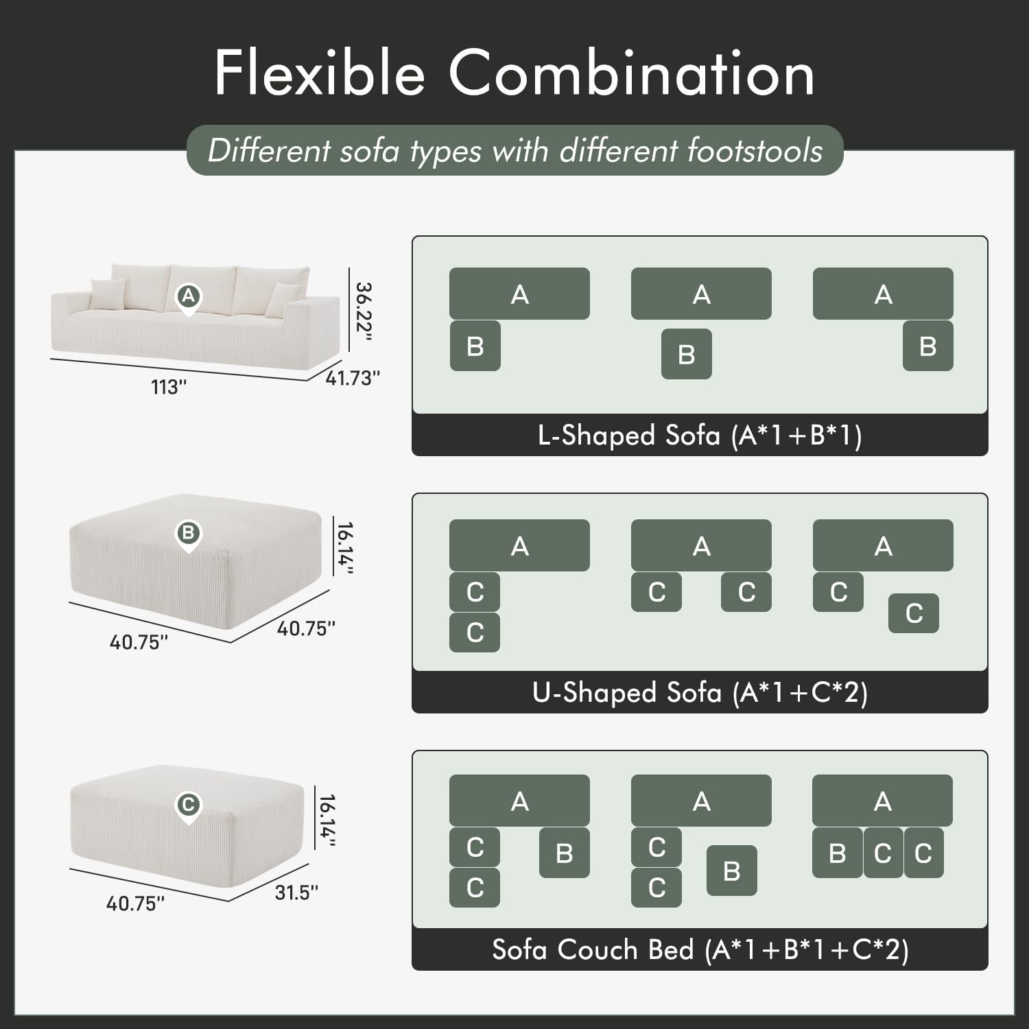 - Versatile Design for Everyday Living: More than just a sofa—this modular set balances style and functionality for busy households. Its compact 112 inch wide fits 3-4 people without overwhelming the room, while the separate pieces can be rearranged for movie nights, game days, or extra seating. Backed by high-quality construction, the sofa’s sturdy frame and fade-resistant fabric ensure long-lasting durability, making it a practical choice for any home.