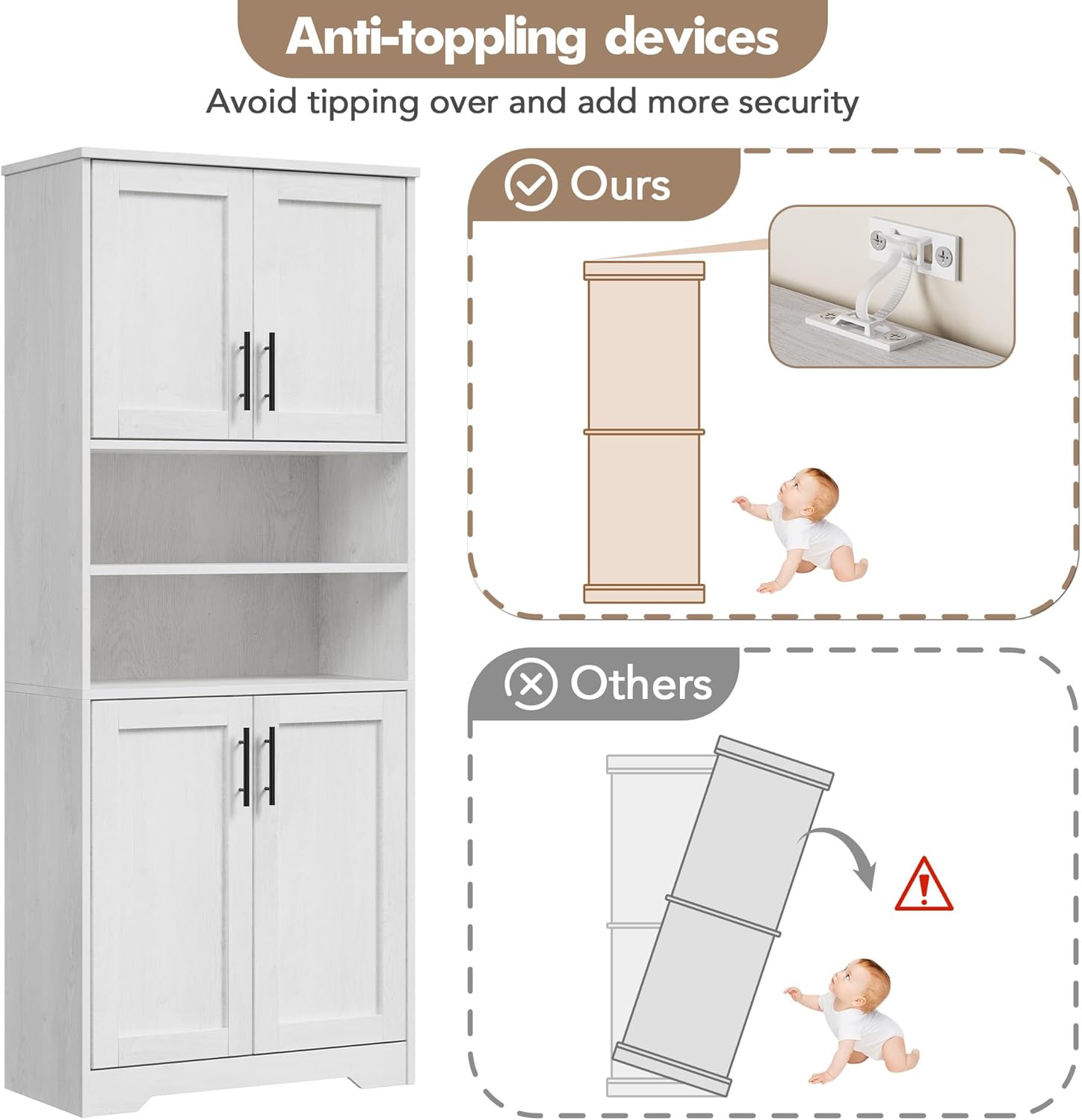 - Durable and Safe Construction: Built from high-quality MDF, this freestanding tall cabinet promises long-lasting durability and stability. The inclusion of anti-tipping hardware provides added security, making it a safe choice for families