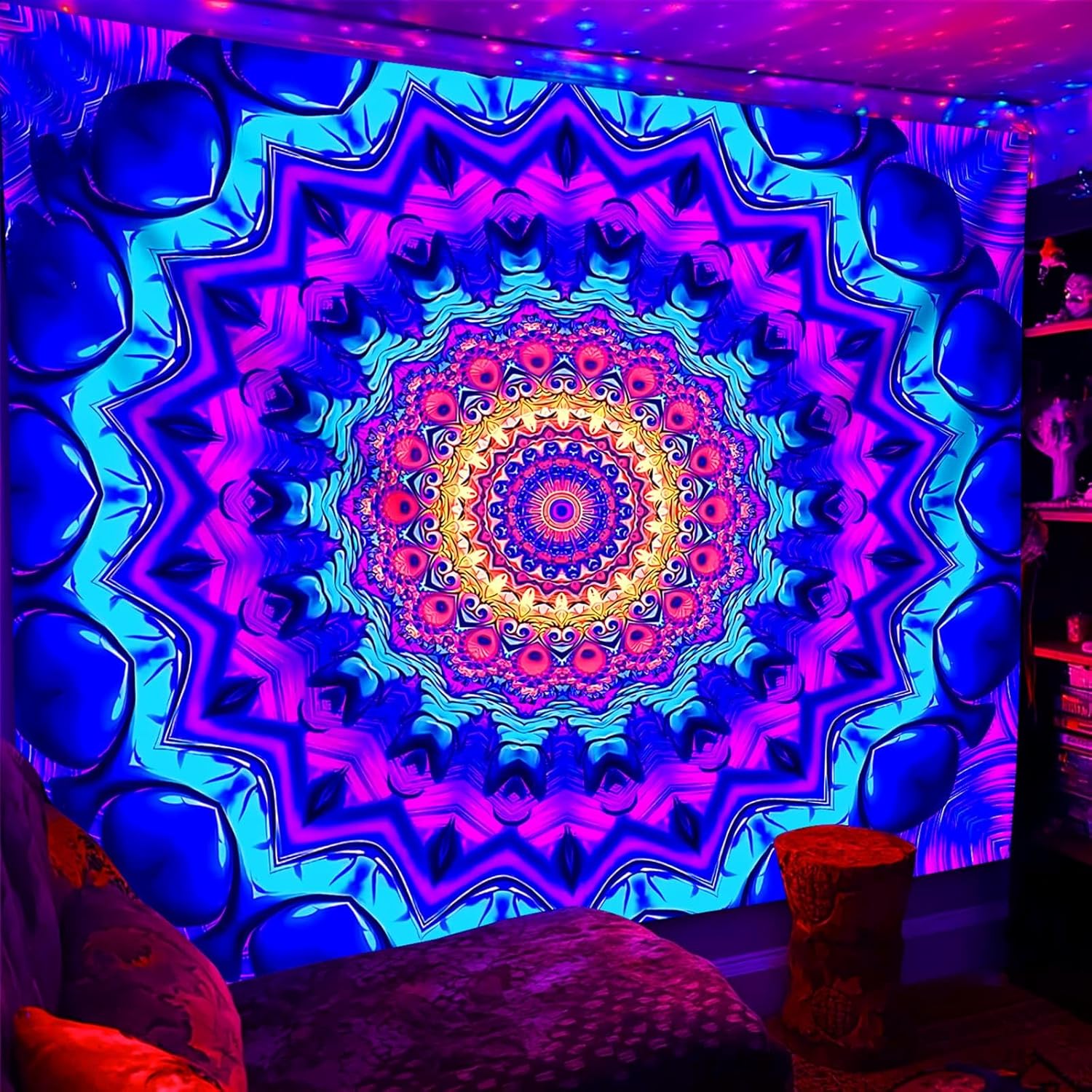 - UV REACTIVE: Utilizing special ink and advanced HD printing technology, our tapestry boasts a powerful blacklight effect and vibrant colors under black light, UV light, and neon.